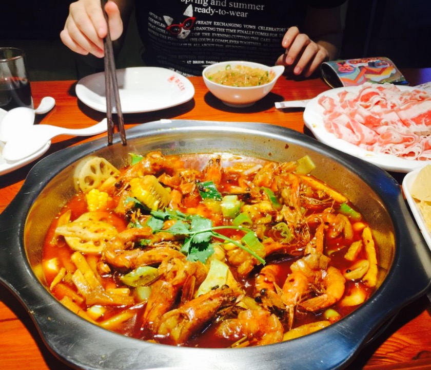 味道还行吧。也只有味道能说得过去。选的原味的,虾有些咸,很可口,手切牛肉很嫩很嫩。配菜有炸土豆条,藕片,西兰花,玉米。环境真是不敢恭维。苍蝇乱飞,一边用餐一边还得用另外一只手来驱赶苍蝇。用来装酸梅汁的水壶有股味道,水壶内壁上挂满白色的不明物,服务生说是糖,我觉得不像,就是水壶没有好好清洗,并且觉得酸梅汤有种要坏掉了的酸味。大堂里都是这种状态,很难想象厨房里是什么样子。服务也是够一说的。服务生态度就如同大家的评论一样,这个连锁饭店挺不错的,不明白为什么对服务人员的管理这么不到位。对于我这种第一次去吃的顾客在点餐的时候完全没有介绍,整个点菜的状态都是懵懵的。之后还是看了团购上的小伙伴评论才知道应该怎么吃,请原谅我的土气。希望可以把服务和卫生好好搞搞,我希望还可以再光顾。