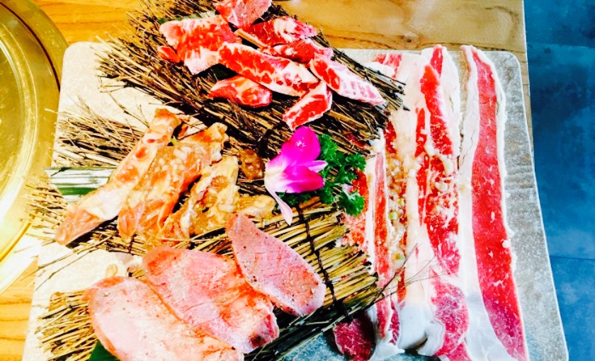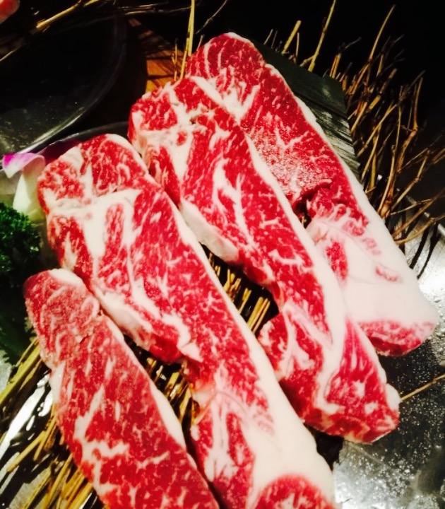 服务到位,可以帮你烤,当然你觉得妨碍聊天也可以自己试着去烤,换纸或者夹子挺勤的,记得吃过有一家,烤肉结碳要换夹子,说的“夹子也是你们自己烤的”没有对比就没有伤害呀,这家都是主动给你换那些工具之类的东西,应该算是融合料理,说不上是哪的,韩日。但是不难吃,有几个菜还是挺有心思的,比如沾满海苔的饭团,饭团里面还有佐料,挺不错的,肉质新鲜,看图片就可以看出来,肥瘦均匀,不知道是哪的肉,但是煎之前之后,硬和弹的变化,可以感觉出来是清新的,进门处的玻璃视窗里面也摆着他们家的肉,证明是清新的,我看上面包得纸,觉得是入口的,一些日式的料理做的也不错,摆盘精心,食材新鲜,凉菜口味中等,她们家招牌很吸引人,颜色亮丽,卡通图案和字体显得特别潮流,是个不错的去处,只是这种烤肉店,因为吃法的限制,大多都是这样开放式的,就是你吃饭时候和别人离得很近,韩国烧烤基本上都是这样,我是认为不是很有自在感,这个是题外话,她们家,好评。