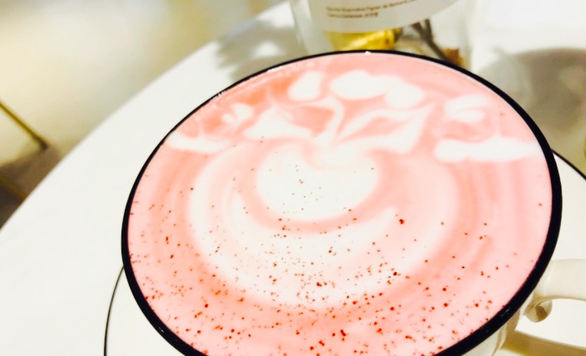 还点了樱花养乐多,也是颜美好喝的。推荐。玫瑰盐太妃也鲜美,是有一点咸的,不喜欢太甜的亲们可以尝试这个