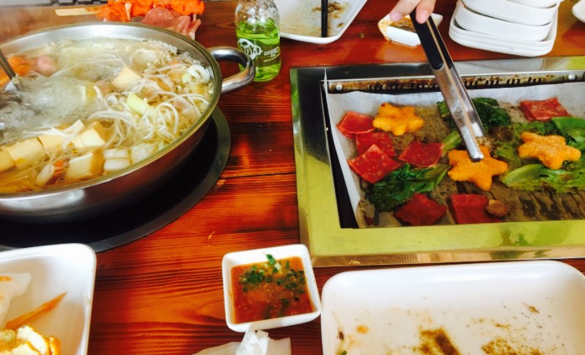 9,9团的一张自助午餐券,带着老公,婆婆,儿子一起来的,服务员老板都很热心,纸上烤肉嘛肉肉是最重点的,有很多肉肉,还有海鲜,可惜海鲜都冰冻的,烤起来太费事,饮品都是盒装果汁,味道嘛要看自己烤的好不好,调料好不好,这里说说调料吧,吃过很多家纸上烤肉了,不过说实话这家的烤肉酱是我最不满意的了,老板娘你真的需要好好改进你家的酱料了,其他我感觉还行吧,这么便宜不能要求太高了,而且听老板娘说菜品还在改进,希望下次去的时候能更好吧^_^^_^。