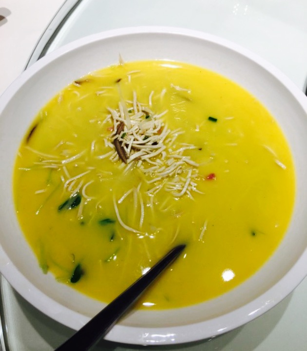 食堂的位置在写字楼里,需要门卫给刷卡,不太合适。环境不错,比较大,宽敞明亮,很整洁,装修简约而有质量。服务特别周到,每道菜都介绍得很详细,把菜的风味都介绍了。摆盘比较考究。金陵盐水鸭,中规中矩,味道很好。沙漏白鱼,旁边摆放一个沙漏,材料准备好,开火后,沙漏漏完,鱼就可以吃了。鱼的味道清淡,鲜美,美味可口。扬州手工干丝,有虾仁和干丝(豆腐丝),汤头浓郁,豆腐丝很Q。钦工肉圆,肉被打得很细很细,因此吃起来感觉有点腻。阳春面,比较一般。
