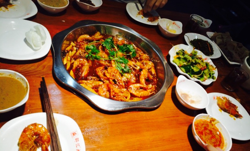 人,天生会吃。是母亲把你带到世上的那一天起,人人都离不开吃。吃,对于现代人来,吃,也是一门学问。吃也是一种文化。南方,和北方,地域的差距,吃的不同,比如说,南方偏甜辣,北方咸。邵汇大虾松山店。仰慕很久啦。今日终于可以品尝到了。一锅两吃。先吃虾,再涮火锅。满足我对虾的各种欲望。停车位比较少/,需要自己找位。邵汇大虾店内分为上下两层,还有包房。空间很大,主要以绿植物和木质装修为主。看起来很文艺范儿,小清新的。服务态度,一般般可能是??新开业原因,食客流动大,店长亲自动手帮忙抻面,亲力亲为的。言归正传,说说我们的大虾锅,有3口味,辣味的,香辣,五香,虾背都开。虾线全部处理好??了。蔬菜水果都是很新鲜只是量太少了,面条免费吃,味道好极了,非常筋道阿。配置虾汤很可口。