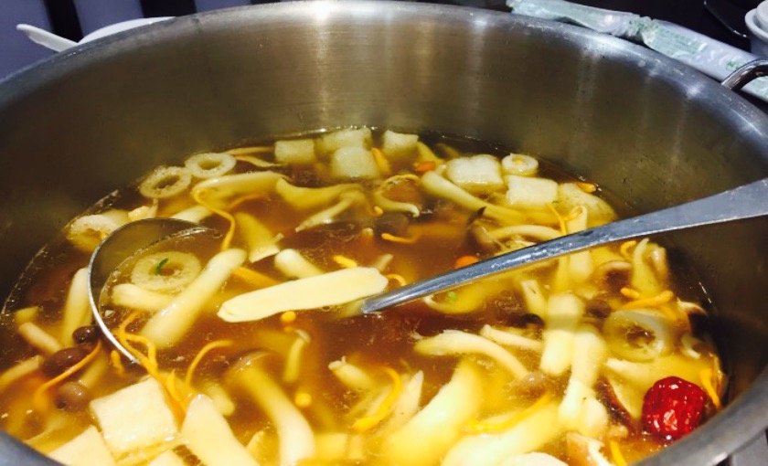 告诉我们应该怎样吃才最好,先喝了煲了15分钟的汤底,味道棒极了,汤底浓郁味香,搭配菌真系一绝,...