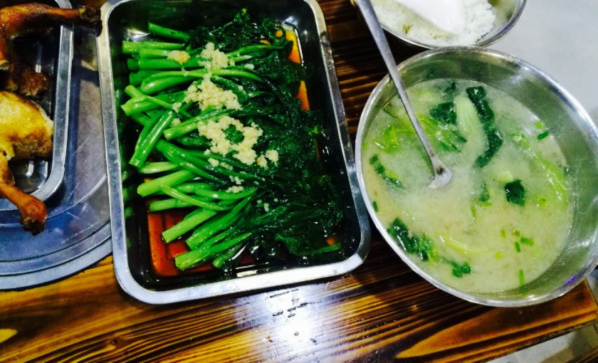 仙庙烧鸡在广州突然开的满大街都是。但是胜在性价比高,特别是烧排骨,吃不完打包回家,明天炒个菜就很入味,首先上来必点烧排骨,说实在话,排骨很大,很鲜美,就是排骨太硬了,对于不熟练的我们来说,太难切,而且第一吃朋友还切到手,这个能不能改进,像吃披萨一样,厨房已经给弄得轻松一点,我们切一下就行呢,烧鸡,中规中矩,没有非常鲜美,而且因为吃了排骨先,有点腻歪了,感觉不到特别入味,青菜,分量足,说实在话,没有炒的美味。