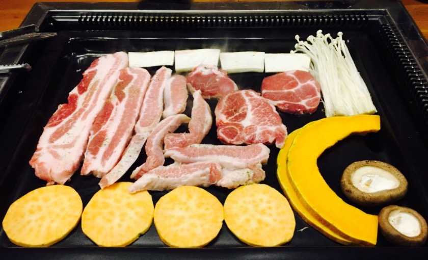 black 。pig。柯桥那家去了两次,这次和朋友到绍兴银泰逛,不晓得吃什么就选择了它。满怀期待去的,毕竟柯桥那家在我心里留下了特别好的记忆,但现实,还是有些失望的。同行的只有一个小伙伴,饭量小,我们单点了一份猪梅花肉和澳洲牛五花肉,烤秋刀鱼,铁板炒饭,这个朋友不太熟,也就没好意思照相了。??。首先说服务,对她家的服务我一直是服气的,肉都会主动帮忙烤好,加小菜也很勤快。主要说说这次的烤肉。牛五花薄薄的,很容易熟,猪梅花圆圆的三片,很厚实。不过。我和小伙伴一致认为这肉实在是太肥了,真的好肥,好油,吃到嘴里油汁就爆出来那种,真的是太腻了,以至于有一半的肉我们都没吃完。只是牛肉的味道还是很浓很香的。秋刀鱼其实挺好吃的,肉质厚实很大一条,配上芥末酱油可以说很鲜美了,不过肉吃得太油也吃不下多少了。吃过两次之后还是惺惺念念的黑猪韩料,这次算是拔草了。