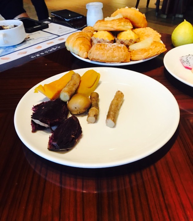 之前论坛里看到一篇帖子,于是内心种下了草。但是很少来汉阳,这次跑马,刚好来汉阳,跑完结束后,急迫的想安慰下自己??餐厅不大,最好预订,不然很可能没位置。周日中午是自助,可是都是服务生帮你端上来,服务质量也是五星级啊。一直以为港式都是小笼屉,分量少可以多吃几种,结果份量都好足,想一样吃半份(2个人)的心破灭了,不过我俩的战斗力也是杠杠的。最受欢迎的必须是虾饺,一个虾饺有4只大虾子,一人干掉了3笼。安虾咸水饺,是油炸的糯米皮饺子,里边是蘑菇虾米馅料,不是很对我的胃口。荷香糯米鸡,一笼2个,个头颇大,肥肉虾米和糯米,口感很好。蒜香蒸排骨,香滑软嫩。金蒜鱿鱼须,鱿鱼须个头很大,垫底的粉丝也很美味。金流沙包,是黑色的奶黄包,黑色的外表很带感。榴莲酥造型很美,但是榴莲味很淡,比较适合不太爱榴莲味的吃货们。古法马拉糕,一桌没有4个人就不要点了,一笼屉8角,虽然美味,但是太饱肚。