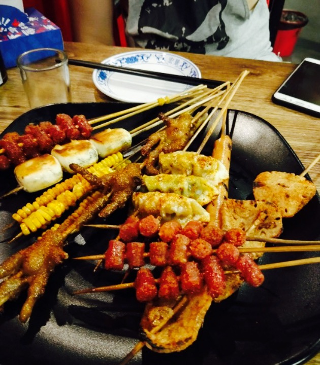 一直是老店的忠实粉丝,经常看到摊摊大半夜铺了一马路。很想带外地朋友去吃,可是又怕别人觉得请客请不到高大上正中重庆烧烤。好嘛,这次到形象店完全一哈斗解决了。位置在福利社上面,离老店步行不远,创修黑潮,味道一模一样的老味道之巴适。第一回吃这个冰粉凉虾动力遭圈粉了,吃了2大碗,还给母婴群的妈妈说好吃得很,红枣是脆的,里面葡萄干醪糟和红豆混合起来一勺子。啊哈哈。清爽。最美味的绝对是鸡爪爪,觉得是卤过在蒸了一哈最后烧烤,反正软倮。猪蹄皮皮是酥脆的,肉质一口油脂爆开,并且不腻。脑花上面是豆腐下面是藕,中间是脑花。一勺子下去,不腻而且还多美味的。而且糯米藕也是一大特点,最后说一样给你们,鸡翅膀也黑好吃。估计我是个肉娃,没啷个吃菜,猪蹄一个人吃完一个。