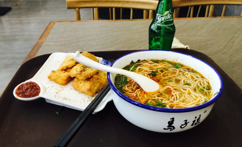 在空港店新开了一家马子禄,就过来品尝。装修还是挺有特色的。他家的面好大一碗啊,碗也十分的重。第一次吃炸豆腐,还挺有特色的,很可口。都快吃完了,才想起来要照张相。1盘大概有十几块,标价是15。面还有套餐也可以单点。