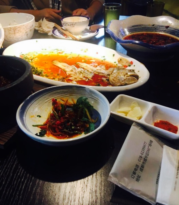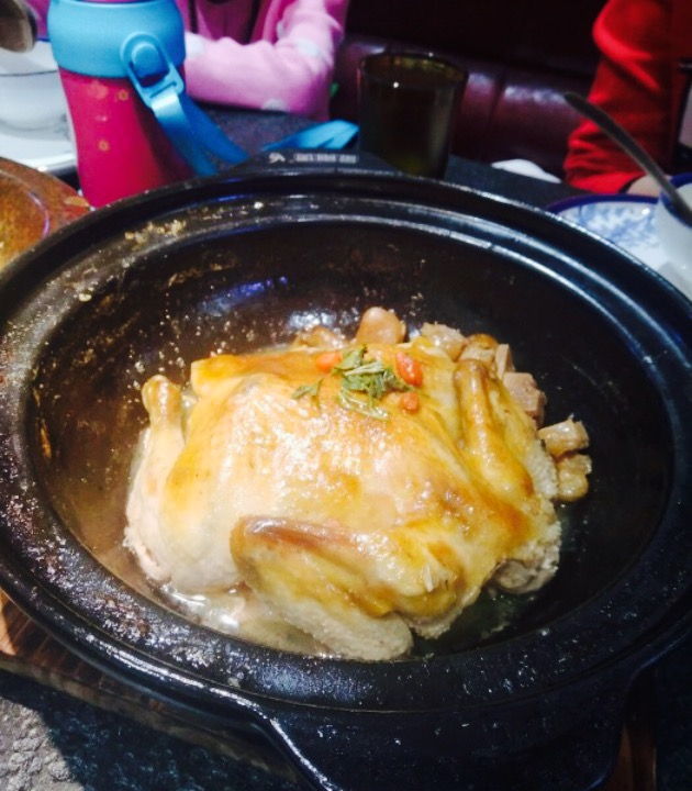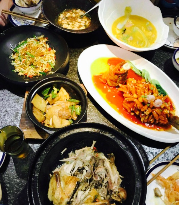 好天气,好心情,和友友们相约SM广场。午餐时间攻略搜一下,小吴越吸引到了我们,江浙菜相对清淡,对于吃了几天香辣味正好换换口味。位置在SM广场4楼,美食楼层正好在万达影院斜对面,室内和过道两个用餐区,装修江南特色看着悦眼。服务很热心,人多安排了大圆桌,店家准备了儿童椅和可爱的碗,只是勺子偏大了,一岁多的宝宝??。选择了大门口醒目招牌的168的套餐,荤素,口味搭配不错节约了点菜时间,又另加了几个菜。烤肉趁热吃,肥瘦相间香而不腻,虾仁很嫩搭配粉丝鲜美,蒸蛋嫩滑宝宝们的最爱,茄子煲热腾腾上桌,慢吃烫嘴喔,但是味道巴适,越到锅底越入味香,印象西湖清淡,虾,鱼,午餐肉,蛋卷和娃娃菜组合,套餐里的毛血旺麻辣味中等,清蒸黄鱼相对来说蒸的时间过长,鱼肉老了。吃下来大家都觉得合口味,价位也还适中,如果份量再加点就巴适了。也许江浙菜讲究的就是小资情调,小而精致吧??。