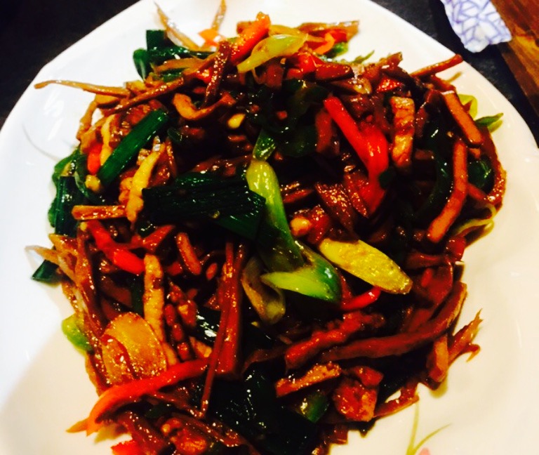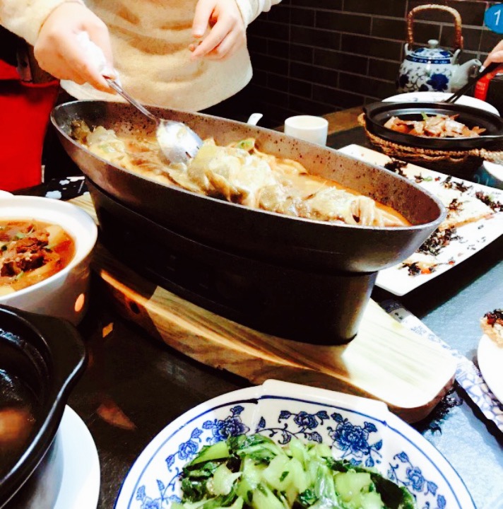 老板娘人很好,看我们等位,除了叫服务生倒了茶水还给我们拿了安徽的小吃,就是图二上的饼,梅干菜馅...