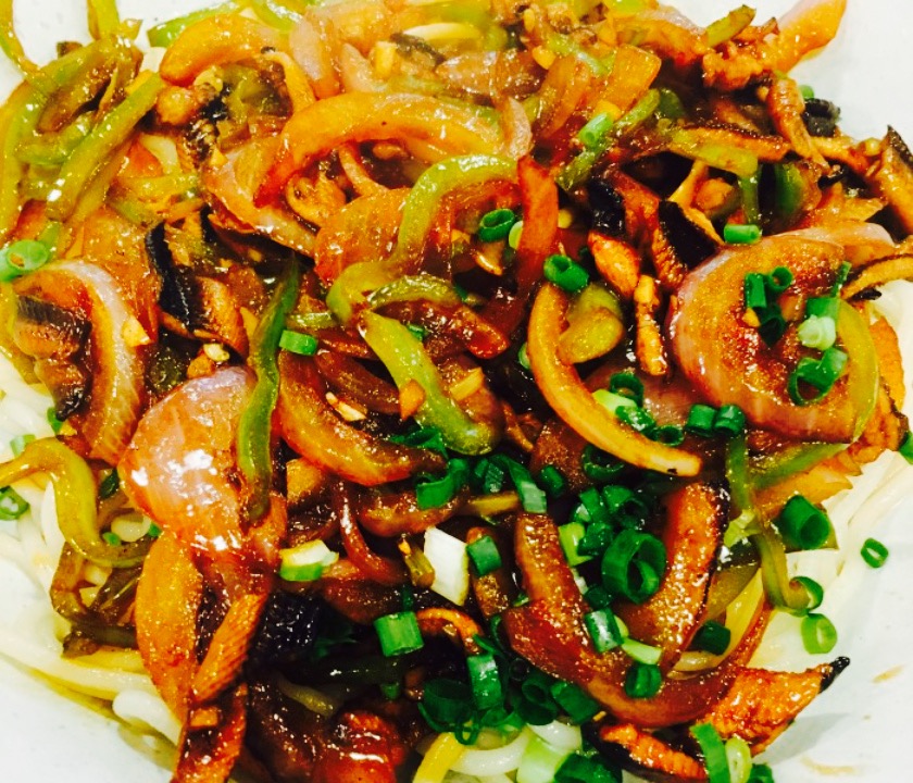 安居幸福苑后面的,马路对面有一堆美食,一路这么逛过去,竟然有这么一家面馆,茄子面馆,还没进门,老板已经开始介绍,她们点的蔬菜配料都是自己种的,进门店面还算大,卫生卫生,点餐区,提货区,自助调料茶水区,买单区, 。 。 。 。 。 。 。 。 。 。开始点面,好多种纠结纠结,老板娘说她们是陝西风味的,怪不得包子什么按袋买,于是乎点了爆炒腰子面和忘记了名字了,顺便说一下配菜的土豆丝很爽口。 。 。 。 。 。 。 。没过一会儿两份面条上来了,价钱不算便宜,不过看到实物还是满意的,腰子很脆,基本没有膻味,里边的洋葱青椒也是多多的,另外一份肉丝多多的,这个面嘛。好吃我感觉有点手工面的样子,滑滑的QQ的,不咸不淡不油不腻,几乎所有吃完,下次有机会再去试试其他面。