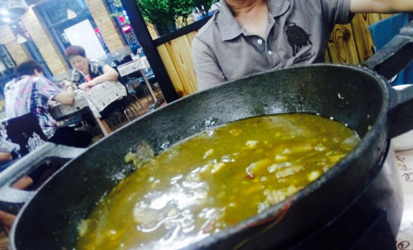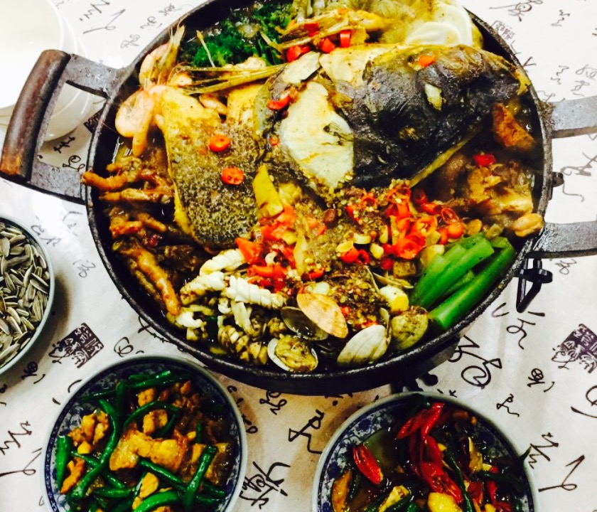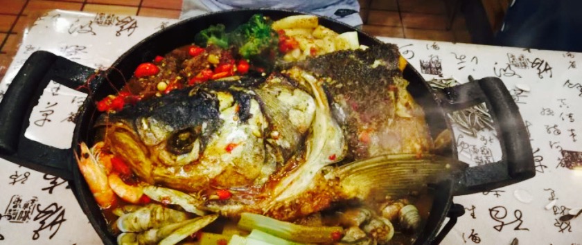 这家店早上是早餐,下午晚上是快餐,品种还是蛮多的,并且我们点的鱼煲也是现做的,还是花了点时间,然后我们又去点了几个辣椒炒肉,炒鸭珍,南瓜炒蛋这些,味道是真不错,每盘菜都很爽口,很符合我们的重口味,哈哈哈。等到鱼煲来了,的确是没想到居然是满满一锅,看着就满足了,并且里面的料也是很丰富的,有八爪鱼,猪蹄,蛤蜊,蛏子,虾,洋芋,年糕,鸡爪,还有几种蔬菜,就是后来发现猪蹄上有毛毛很多,就是不是很高兴,其余到还好,可是我们三个人也是吃的很饱了,重点是份量多。
