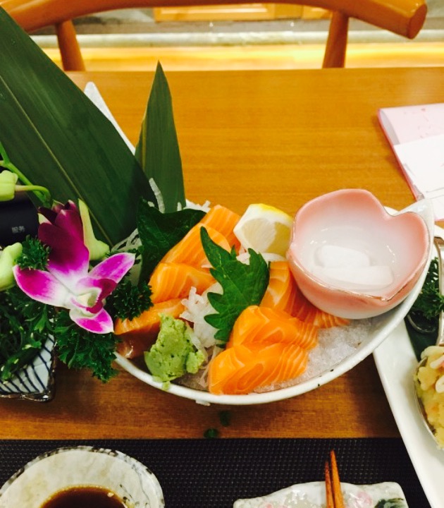 晚上九点才吃晚饭,走了几家都没吃成,本来这家不报希望的,结果去还能吃,但看了下菜单,多半是寿司手卷和面这些,那么晚了,不想吃主食类的,就点了少少的不是主食的,三文鱼厚切,必点,我不是专业的,不晓得三文鱼纹路部位肥瘦这些,只知道吃进去觉得巴适,没有加管状的芥末,加的他家自制的芥末,不呛鼻子不流眼泪,不错。芝士烤大虾也很用心,大虾烤的不干,保存了虾子本身鲜嫩,芝士表面微黄,保存了虾的清新,火候刚刚好,不错。还点了个福袋,以为里面没有米,结果还是有,很久没吃白米饭的我,一定觉得很爽口啊,但不利于减肥啊,少吃少吃。总的说来这家用心来做的日料店无论食材还是手艺都还是比较高的档次,虽然店子不大,但在这开了那么久总会有他的独特之处,是吧。