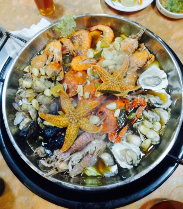 位置,镇江路,青岛43中旁边就是,交通也很方便,道路通畅。环境,门面比较传统,内部设置也比较亲民。菜品,首先该店是主打海鲜类火锅式餐厅,海鲜品种比较齐全,有鲜活海鲜,还有冰冻的,再者,还有肉类制品,以及其他火锅常用菜品,我是自己一人去的,刚开始上的是一锅海鲜,内有蛤蜊,扇贝,螃蟹,大虾,海虹,海蛎子等,属于海鲜大咖,给我上的底料锅底属于微辣,个人不太喜好吃太辣的东西,但如果没有辣味的话也许会有些腥味,锅底微辣型的调料有点像是小时候吃方便面的那种带包调料,海鲜熟了过后,非常美味,香鲜无比,也是辣到好处,我个人来说吃的还不是很多,比较喜欢大咖里的螃蟹和大虾,螃蟹肉嫩入味,蟹白蟹黄都很美味,大虾也是十分不错,吃完后来自己可以随意再去自取海鲜,不限量,另有自制酸梅汤,火锅常备的麻汁之类都是现取,还有一些点心和水果罐头制品,吃的地方是在三层大厅,二层好像还有包间可供团体用餐,一层是海鲜肉类摆放的位置,餐厅内有空调和风扇,夏天去吃也很OK,地方虽然不是很气派但是五脏俱全,是个吃海鲜的好去处,另外要小心的是,现取海鲜的时候有活海鲜的,可能不太容易搁置,尤其是那些活虾,海虾和小龙虾,用工具取出来放盘子里活蹦乱跳的容易跑掉,一下子扔到热锅里里更容易自己跳出来,建议找现场的服务人员协助下,活海鲜现吃确实很好吃。另外,走的时候给了个雪碧。