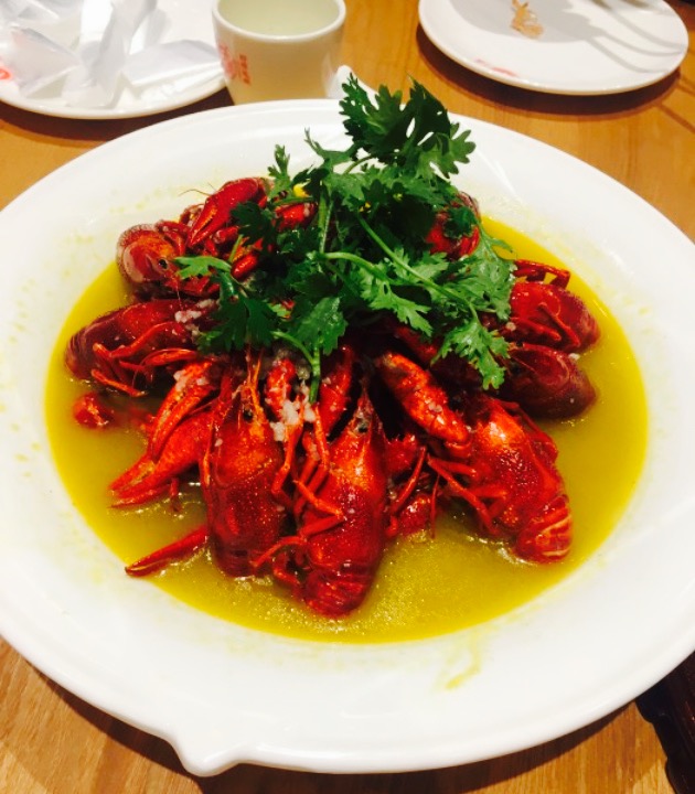 龙虾吃完了,没想起来拍。环境很清幽,曲曲折折的路 。龙虾各大饱满。蒜泥龙虾里蒜泥有点少。十三香的卤子泡面很入味。香辣龙虾我感觉可以再辣点。最后吃主食才想起来拍了几张。装潢挺漂亮,有一种朴质感。螺旋小黄瓜的汤汁调的味美。螺旋的形状很与众不同。扇贝便宜且鲜嫩。秋葵也放了蒜泥,不错哟。炒肉不老不嫩,裹着尖椒味道刚刚好。