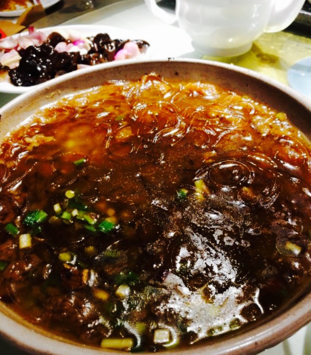 闫腰子的??爆炒腰花果然是很地道,又找回了鲁菜的出色,火候菜就是要吃这个嫩脆口感,还没有腰骚味,很棒,再看这刀工,不愧是主打。??糖醋里脊也是老味道,里脊炸的很透,再配上糖醋汁,酸甜中透着里脊肉的酥香,吃一块想下一块。??酒闷肉,传统酒酿的红烧肉,浓浓的酒香,剔除了五花三层的红烧肉的肥腻,唇齿间肉香四溢,解馋当口。??锅贴,地道的看济南味道不亚于便宜坊,配馅咸淡适中,趁热吃外酥脆皮,有儿时的味道。??牛肉芝麻饼很不错,虽然不是老济南菜,但是色香味俱佳,老少皆宜,也值得一点。送的??长寿面很棒,有水准,之后我又点了??老济南打卤面,没想到大厨的做面功夫也是了得,一碗比一碗好吃。美中不足的就是闫府第一福没有原来在万达吃的入味,有些老了,其它的都是中规中矩,必须给好评。