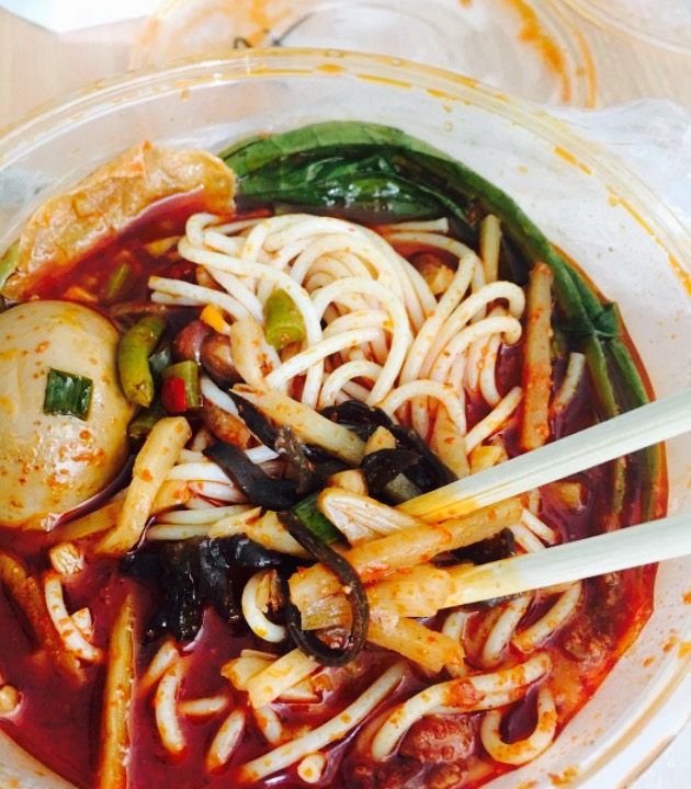 螺蛳粉还是满入味的。时隔多年天津终于开了一家柳州当地著名的〖王味螺蛳粉〗啊。筷子勺都是消毒的自己拿