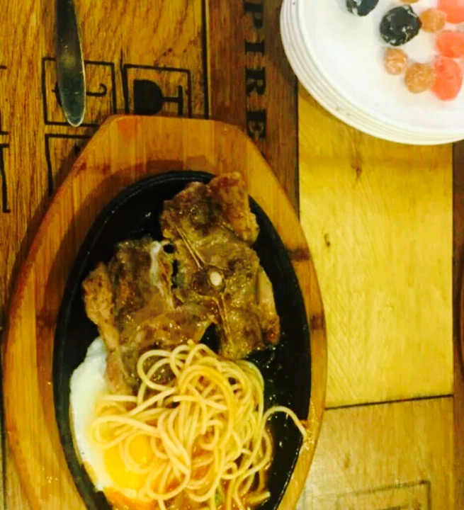 七夕去的,拖到现在才写,最近实在是懒得可以了。【地址】万达4楼,除了海底捞,就是他家要排队了。【环境】很有情调的,陈列也很整齐划一。【服务】很不错,服务员收盘及时,点餐也很快。【菜品】牛排不限量,开业到如今去了很多次了,的确是很喜欢他家,还好离我家远,要不然我总去了,钱包都要扁了。七夕和闺蜜约去他家吃,老板娘非常暖心的,给每个女孩子一朵玫瑰,我们三个女生,拿了三朵,瞬间觉得好幸福,哈哈哈哈。他家热菜凉菜水果饮料披萨,完全都入味,怎么办,没有感觉不入味的,如果真要挑,那就是上次那个炸蚕蛹,真的是小众的食品,还是不要摆出来了,我都要绕路了。