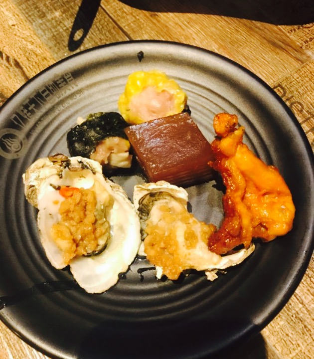 第二次来了,觉得性价比好高。种类非常的多,甜点,饮品,烤茄子,火锅。都齐全。2个人加了8元可以火锅跟烧烤一起同时使用。这次我跟朋友是晚上来的,这个价格有大闸蟹真的让我好惊讶,更惊讶的是这个大闸蟹没有很难吃。还算挺清新的,甜甜的挺不错。另外,还淘到了一个像勺子一样大的贝壳,可惜的是臭的,但是其他小个子一点的不臭,还好。下次有机会再来。