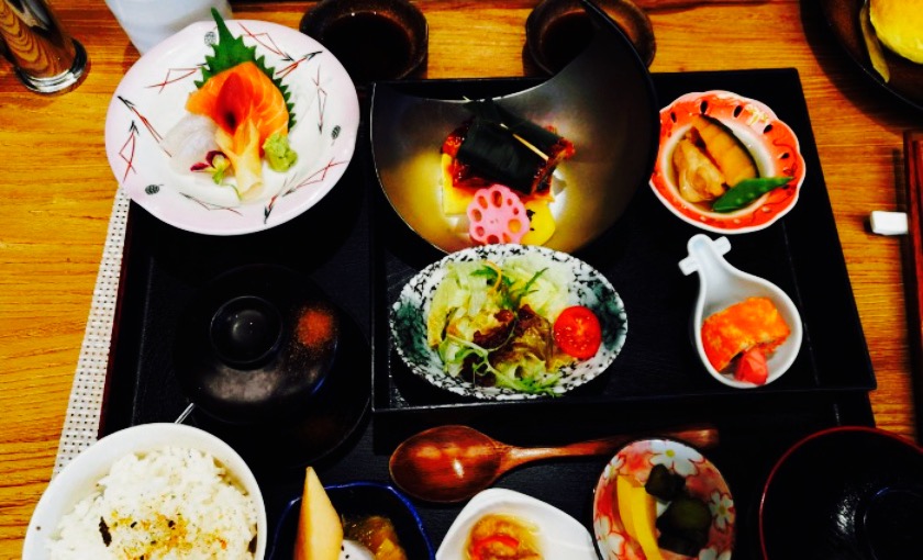 在拈花湾里逛着逛着,找到这家餐厅,觉得环境很不错,清净。于是决定在此就餐,服务生热情有礼。午餐都是套餐,点了招牌的和风禅意便当,很不错,便当盒分上下两层,餐点很精美,吃完一层服务员会来收掉然后再吃下面的一层。味道不错,三文鱼甜虾很清新。餐后甜点抹茶布丁也很可口。