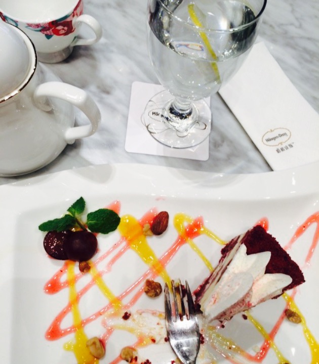 去逛街吃完饭来个下午茶。实际上也没什么吃的,随意点两个球吃。这家店以前挺气派的,现在没那么壮观了,或许因为旁边的星巴克太壮观了。一个抹茶一个提拉米苏的再加一个巧克力麦芬。地不大,人很多,一个成品麦芬要十分钟后才给上,那真是忙。味道嘛。毕竟哈根达斯冰淇淋哪里都有,都大同小异。巧克力麦芬。和旁边的星巴克比这个麦芬我还是喜欢他家的。整体不错。