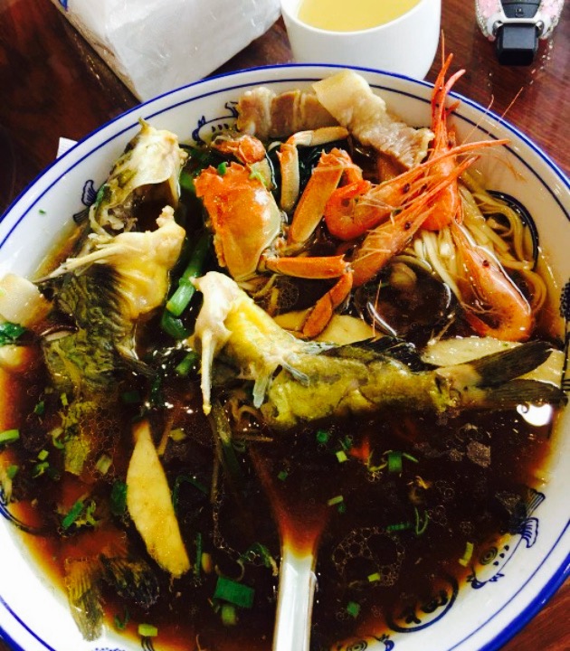 铺子就在兴太路17号,看到施斌聊斋上介绍的,所以特意过来尝尝一下。店内环境还可以,服务还挺不错的。既然来了,那就应该尝尝电视里昂刺鱼面,一碗面48元挺贵的,可是因为是现做,而且端上来后,立即就觉得还是挺值得的。首先,汤的味道特别的不错,特别的美味。昂刺鱼,特别的鲜美,螃蟹的味道也十分的赞,而且螃蟹的个头也不是很小。总的来说,这家店还是挺不错的,下次有机会会再来的。
