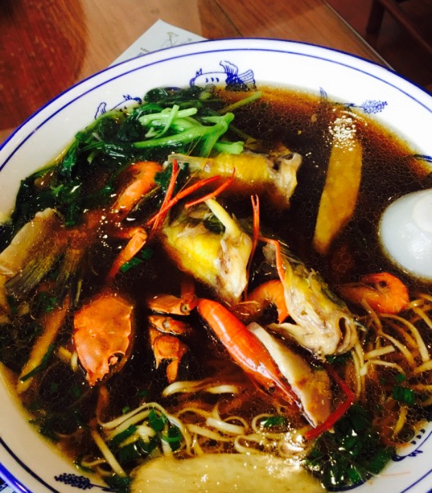 前几天,带家人起个大早,跑了20多公里的路去这家拔草,我父亲说早上吃个面你是不是傻了,汽油不要钱么。我说我是个吃货,嘻嘻。言归正传,第一,店门口及周边都可以停车。第二,店里人流量确实很多。第三,我们选了2种面加2种浇头(昂刺鱼面48元和小肠面15元),本人觉得昂刺鱼面底比较鲜,料又足,当然价位也不错,只是时间需要20-30分钟,因为浇头是现杀现做的。小肠面也不错,面汤的味道我很开心,小肠也很爽口,很有质感。那天看见别人吃的焖肉和爆鱼面卖相不错,我也想吃,可惜没有肚子哩。路太远下次估计很难得可以去吃了,整体来说我觉得客人选择比较多的,昂刺鱼面,焖肉面,爆鱼面,小肠面。