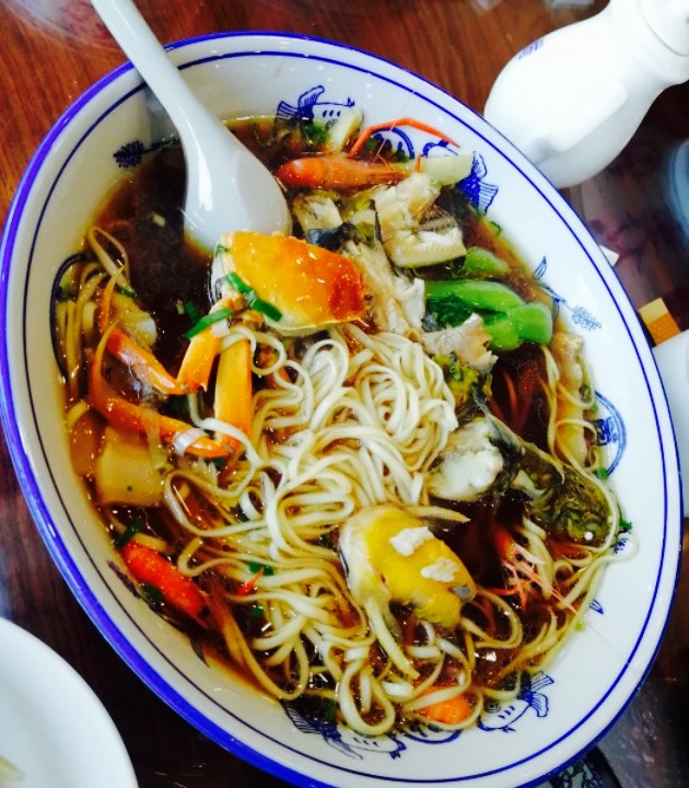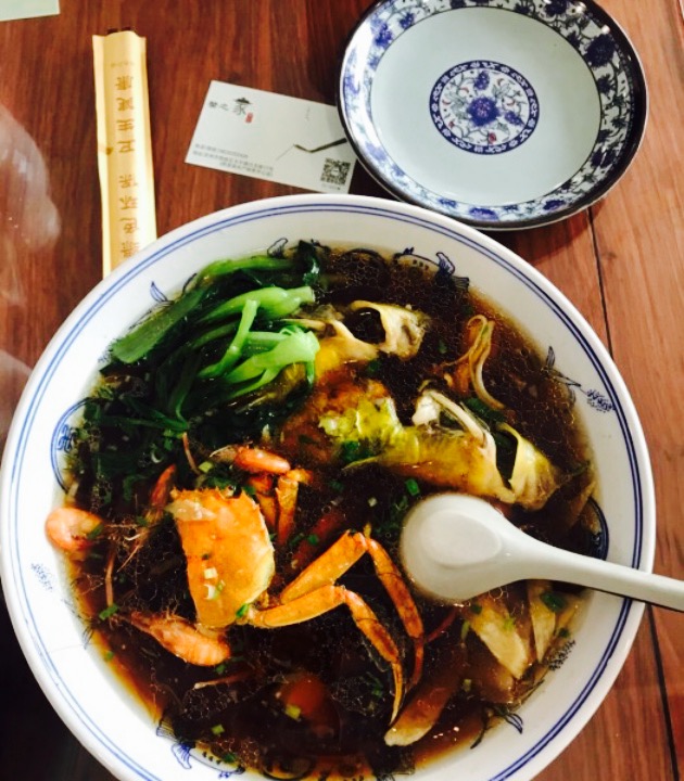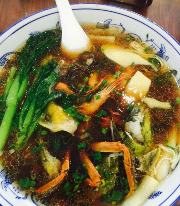 虽然远在太平镇,可是好多很远地方驱车赶来吃面的人,生意是特别的好,桌子不是很多,去晚了要等位,这次点了招牌昂刺鱼面,面里有昂刺鱼,小螃蟹,虾,都是爽口的东西,一起煮出去的汤面,鲜的要命,还点了小肠面,很整洁的小肠,爽口,还有咸菜茭白毛豆面,她们家的咸菜真的腌得很入味,恨不得打包一份带回家。