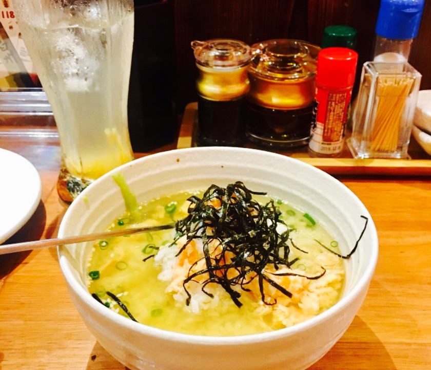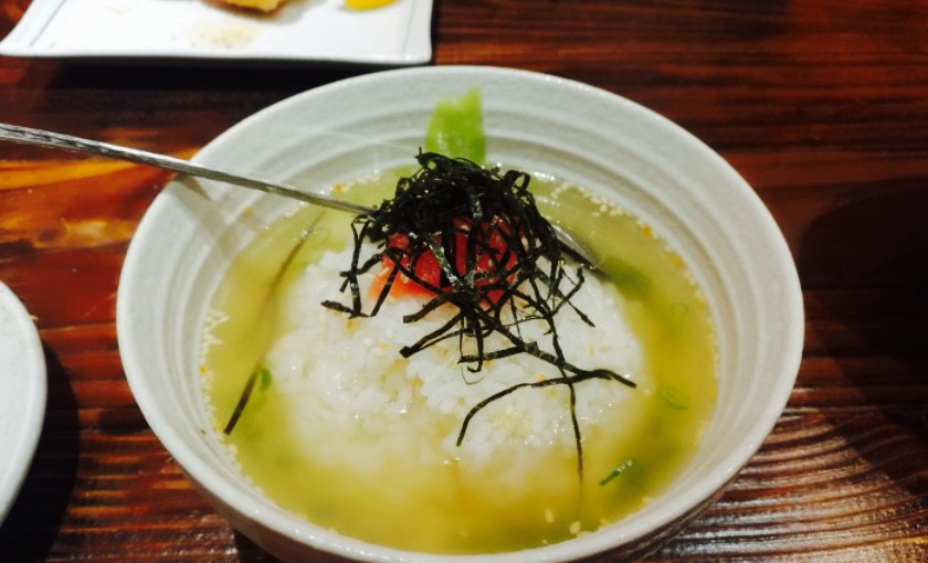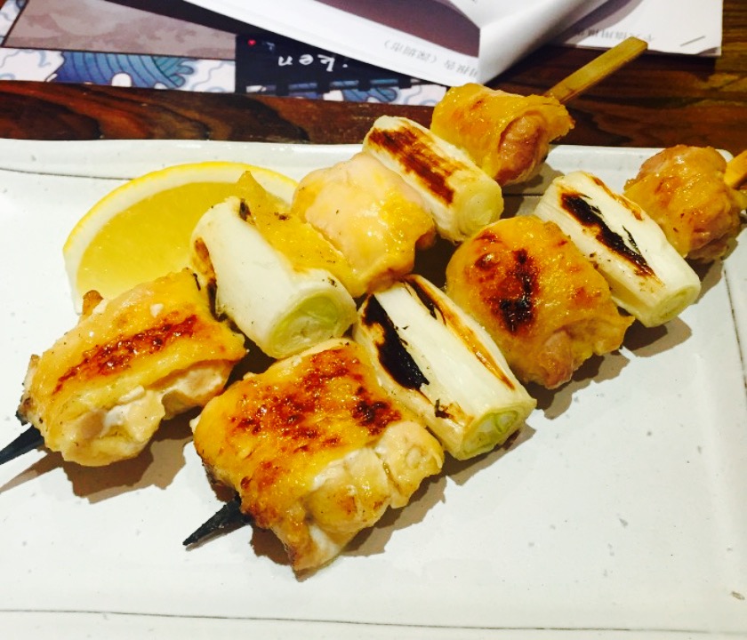 在广州吃过的鸟剑,偶然发现在东门新开了一家,果断去尝试。店家正在试营业中,刚开张还不到十天,所以店里还没什么人也比较僻静,反正店里的氛围就是很适合三五好友一起喝酒聊聊天,或是自己来喝点小酒放松下心情,店里有吧台,榻榻米,普通座位三种,也很适合拍照。位置,尽管不在大路边上,但也不难找,跟着导航就能到,门口依旧是小小一个,进来以后却别有洞天。食品。海鲜沙律,茶泡饭,烤物都口感清爽,值得推荐给大家,特别是茶泡饭,有好几种口味可供选择,才20元一份,这个性价比挺值得一试的,烤物方面梅子鸡胸肉(图4)吃起来会比较特别,觉得是之前没吃过的味道,但又谜之鲜美。唯一有点失望的是因为好奇点下的烤饭团,有两种口味酱油味和味噌味可供选择,点的是味噌口味,我以为是整个饭团都会有味儿,但结果饭团不小,只有表面的有味儿,中间部分没什么味儿,有些失望。还有芝士鸡蛋卷的分量有些小。饮品的话店里有各种啤酒清酒,但这次去没喝酒,点了一杯可尔必思,也还挺不错喝。服务。可能日料店的服务员都会非常特别的客气。反正服务确实很不错。
