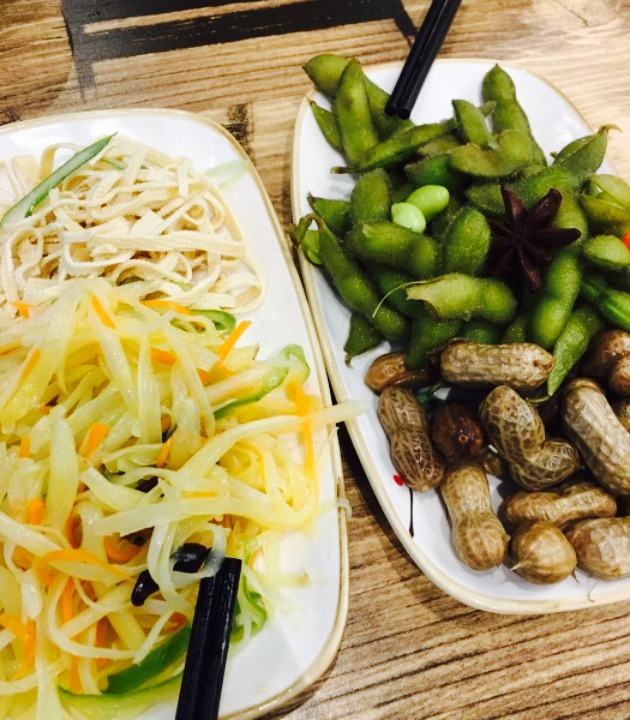 家门口的饭庄,就在万达步行街靠近二号门这边,这家饭店总体印象是装修个性,环境整洁,菜品经济实惠,服务也很好。所以晚上懒得做饭的时候就经常来这家吃。最喜欢也最特色的是这家的烤骨,家长小孩都爱吃。骨头烤的入味火候好。酱骨一小份也很多。还赠送两个小凉菜。不过比较的话还是烤骨更胜一筹。其余的菜也都不错。炒合菜清淡又好吃。水爆肚很嫩。干煸豆角和铁板粉丝有点过于辣了。涮肚跟其它的菜相比的话就一般啦。其实还吃过好多菜,没拍照片,不过推荐炸鱼。今后还会经常来经常来。