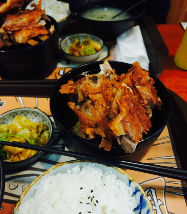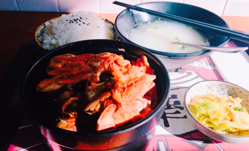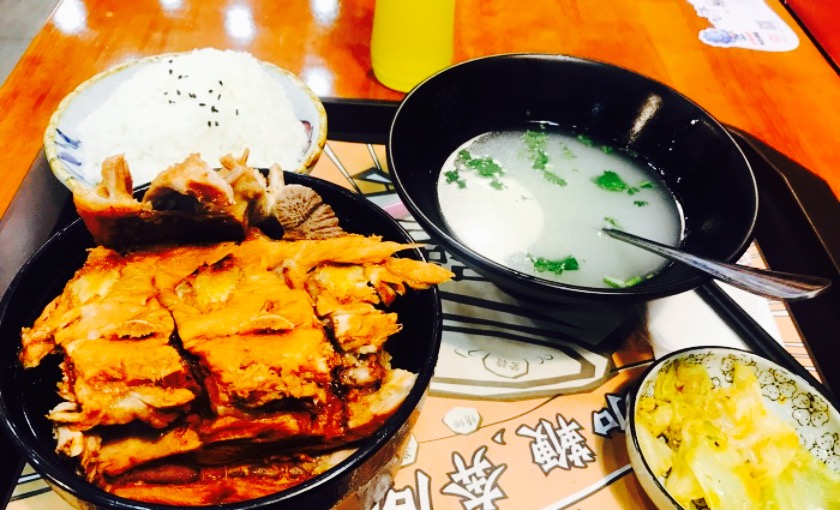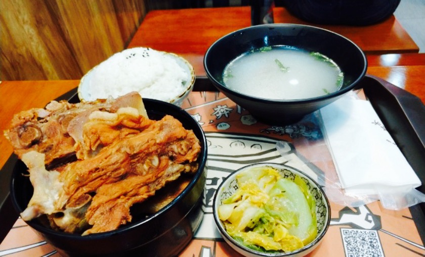 听我们同事说这家不错,心水了许久,今天带她拔草啦。店家不大,不过装修风格还不错,都是动漫人物,比较年轻化,虽然小店不大,不过人还是超级多的,犟骨头饭是招牌,吃的人不少,还会发手套,不过我觉得炖的并不烂,比较难啃,排骨饭还可以,可是也不是纯排,牛腩饭挺不错,筋头巴脑的,不会很瘦,下饭好吃。还有送一碗汤。