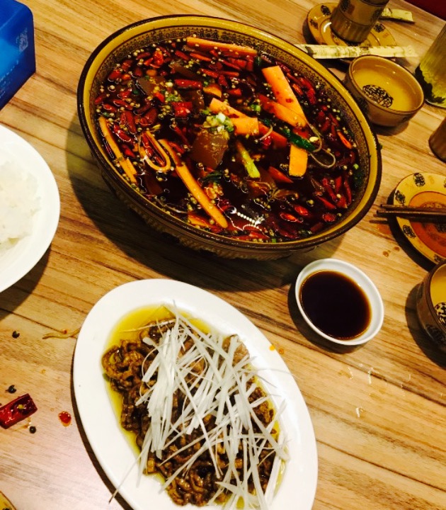 来都江堰吃的第一顿饭。因为前面装修了都挡住了这个店的门面差点找不到,靠着高德导航还是让我找到了。门脸很优雅哈,进门左边是厕所右边是庭院吃饭的地方,我们两个人就点了三个菜。这个白果炖鸡端上来满满的一盘都是白果。还是挺好喝的只是因为都是在饭后上所以没怎么喝完,小炒肉很爽口非常推荐。如果空心菜里面放几个辣椒就好了。价钱很划算吧我们两个人只花了九十四块钱。