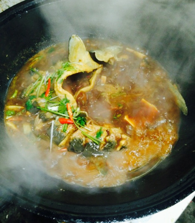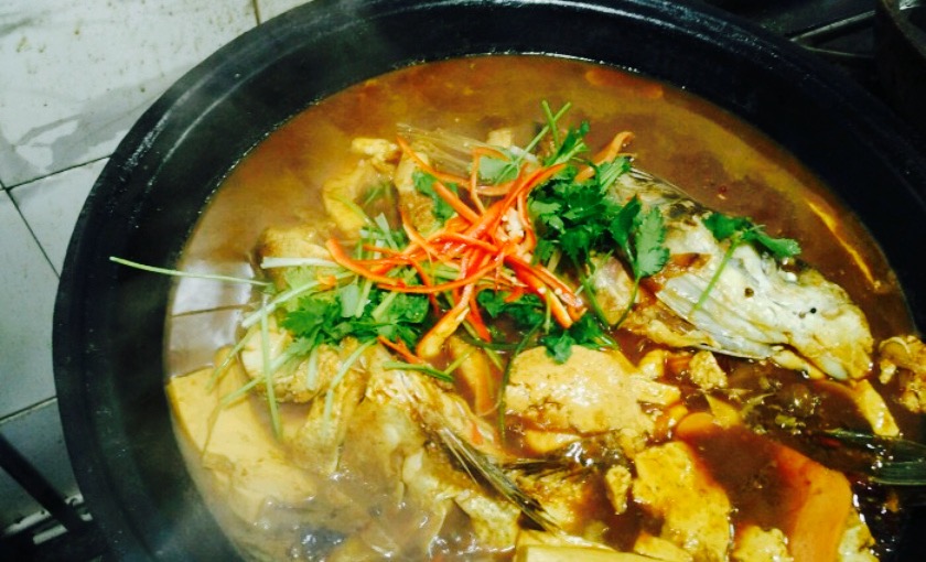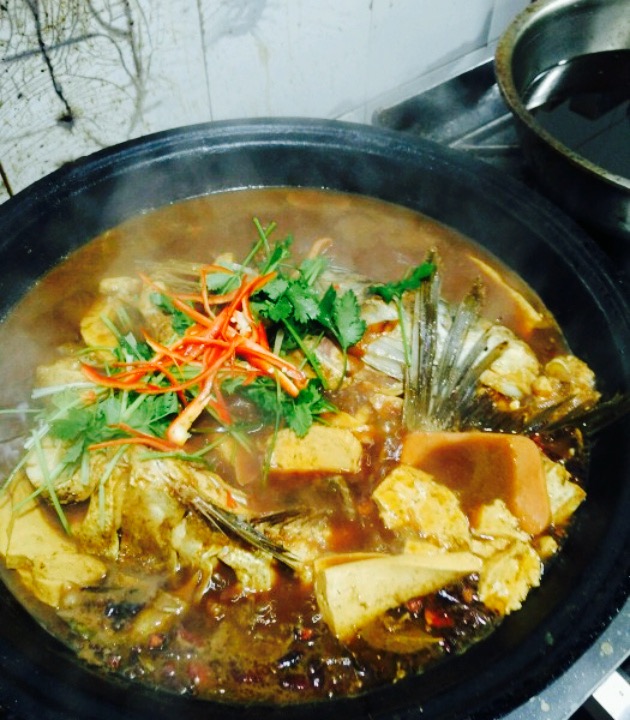 从外面看环境还不错就和朋友忐忑的进入了,没想到还的确不错,四个人花了200多,很饱。点的嘎鱼,因为平时草鱼鲤鱼鲢鱼很容易吃到,自己做也不是很难,但是嘎鱼不是到处都有卖,就是买到了长那么丑也没有勇气做,可是这家做的确实不错,很爽口。