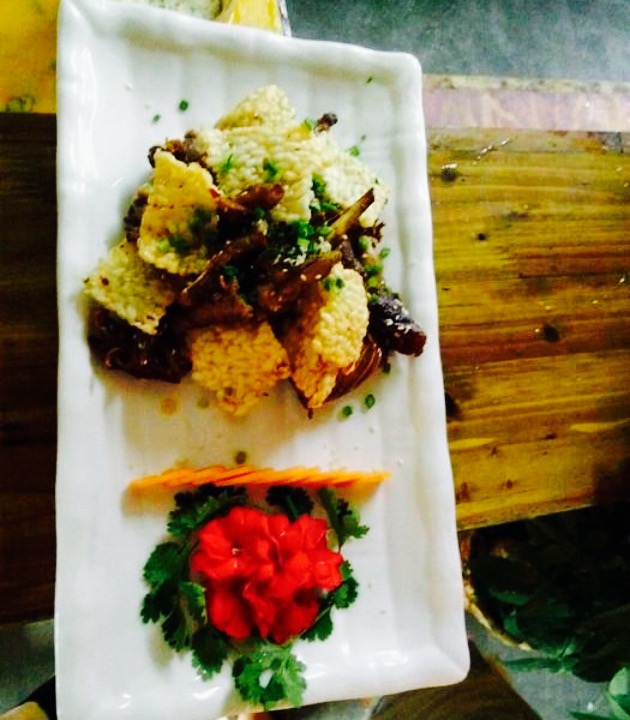 饭店大大峡谷出口500米处,装潢得很别致的,起码比路边其他一些饭店弄得好一点。进门是个小拱桥,下雨的时候客人进进出出会沾上泥,有点滑。有小桌,不多,大都是圆桌,估计做做旅行团生意。我们是团餐,10个热菜一个汤,没有冷菜,米饭管饱。团餐能做到这个味道已经很不错了,有一个当地小鱼,炸的,很可口。就是导游有点坑,一路上多多少少A了团友不少钱,10人一桌的团餐才点10个菜显然不够吃,由于先到的人和后到的人差了1个半小时,先到的人就先吃了,7个人就吃得差不多了,晚到的人只好去别桌挤一挤,也许也没吃饱,后来车上看见他们都在吃干粮。如果能多点2个菜就不糊这么尴尬了,觉得这家店味道蛮合我口味的。