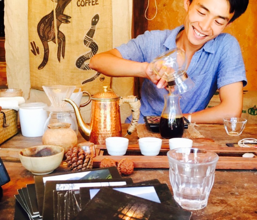 要从桃源村去大理古城,途中会路过喜洲。之前在月球咖啡的一篇推文中看到过他家的介绍,觉得蛮特别的,想象不到这样一个地方居然开的了独立咖啡馆,出去好奇,就顺路过来拔草了。这家咖啡馆连带老板都很喜洲,太朴素太有情怀了吧,朴素到连电扇也没有,冰水也没有。如果不是出于目的来,如果只是单纯路过,估计我也就真的路过了。点了咖啡后,老板娘一个人烧水磨豆冲泡,在一个像茶桌的操作台上完成一套工作,老板闲暇就是在自己烘豆,有提供给其他咖啡馆。至于咖啡,可能太热啦,有些影响口感。老板娘很有态度很能聊,是个有趣的咖啡厅。