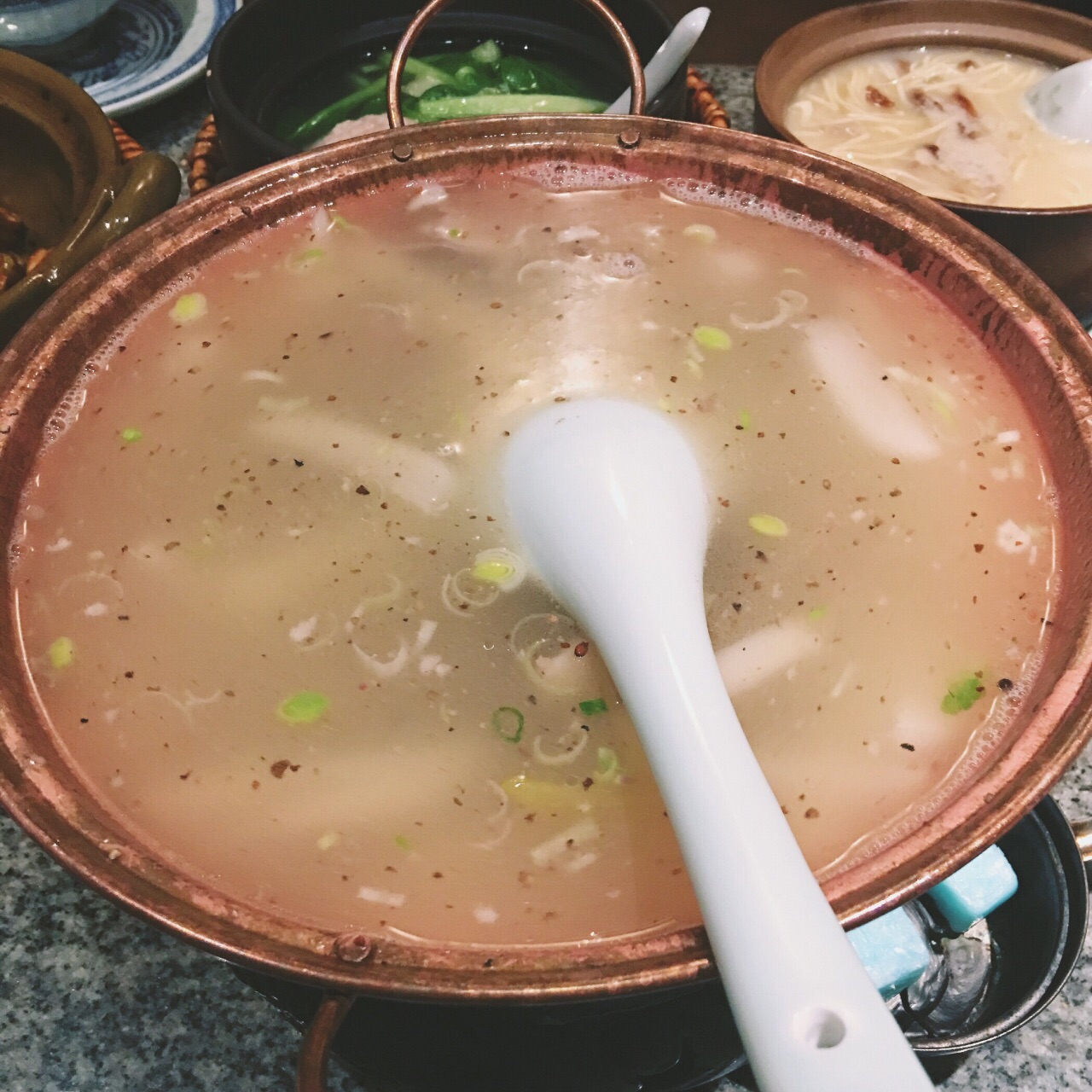 又去南京大牌档扫了一顿啦。为了迎接几年没回家留学美国的同学,特地尝试点了几样新菜。有一样比较失败,便是羊肉酸萝卜汤,真是不知道这个汤是酸的,萝卜是腌过的酸萝卜,放在汤里面是可以去膻味,但是这个酸汤真是吃不来,这种吃法好像很早以前就有,看个人口味了,有些人很爱吃,有些人不行。渔舟唱晚也是鱼,不知道里面是银鱼还是面鱼,外面拖着面粉,蘸酱很好吃,不蘸酱没什么味道。牛蛙味道挺特别的,很嫩,里面还有芋头,在一起挺好吃。蒜蓉铁板虾下面铺了层粉丝,很好吃,比外婆家的精致。