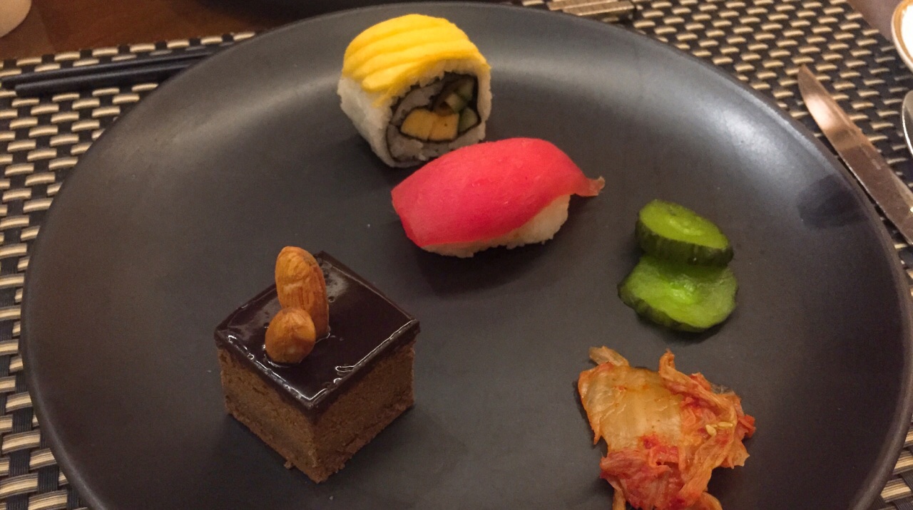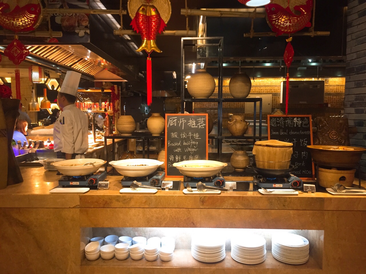 与各大五星级酒店自助餐厅比起来,贵和洲际的就餐环境更为安静私密,营造的环境很好,轻而柔的音乐,贴心的服务和问候。 手工面食区有馄饨和水饺,日料区寿司卷种类丰富,选择多样,刺身一次给的分量很多,羊排鸡排比较嫩,不过没有牛排,酸奶很好吃,咖啡由于错拿了小杯去装,满满一杯可算是考验了我的稳定力~~~ 济南特色的把子肉,羊肉串也都有供应,虽然种类分区没有到眼花缭乱的程度,但也大致满足需求。