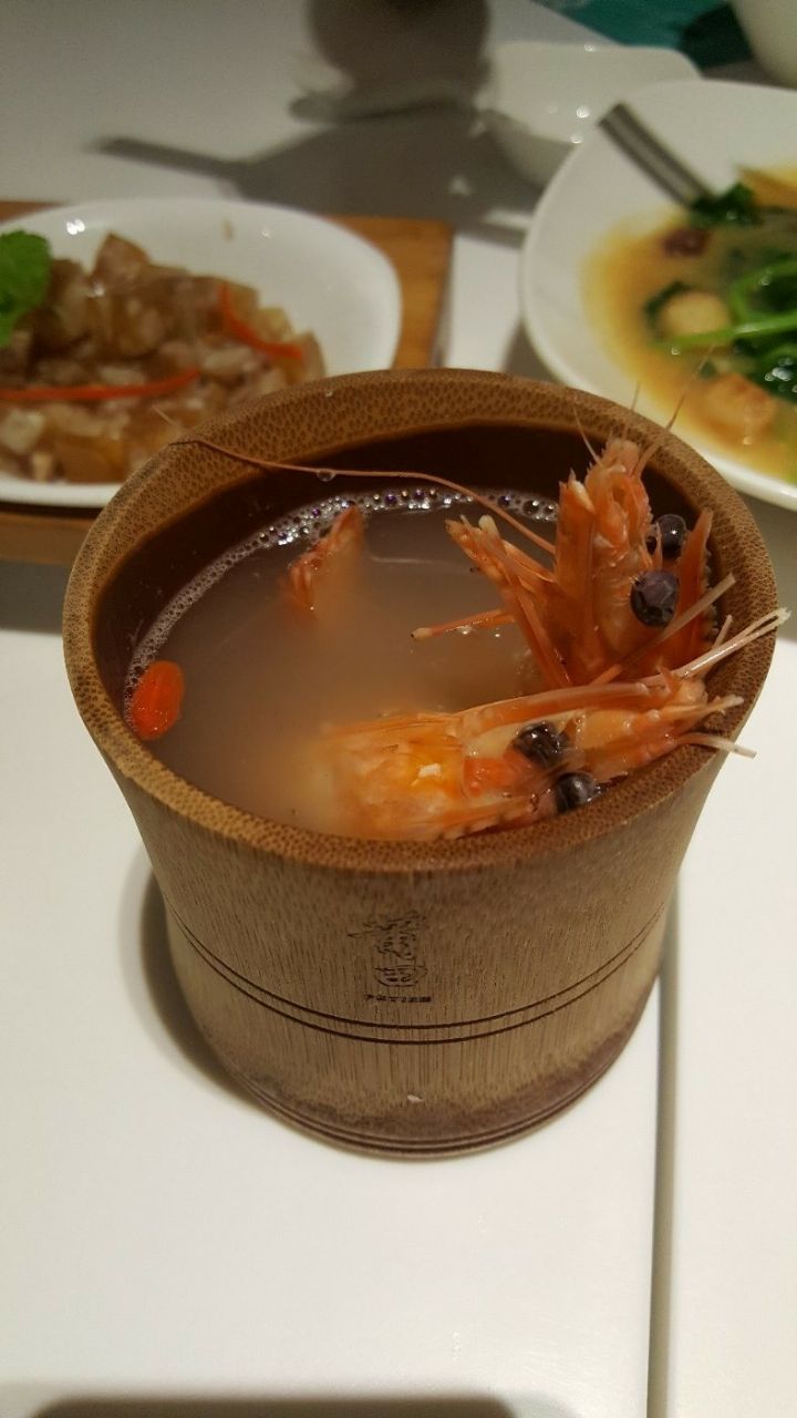 药膳竹筒虾我觉得还挺好吃的,第一次吃药膳和虾一起来煲的汤,感觉还不错,猪蹄也很糯,味道很棒这里的菜品它是以莆田的地方菜为蓝本来加以创新的。药膳竹筒虾我觉得还挺好吃的,第一次吃药膳和虾一起来煲的汤,感觉还不错,猪蹄也很糯,味道很棒。