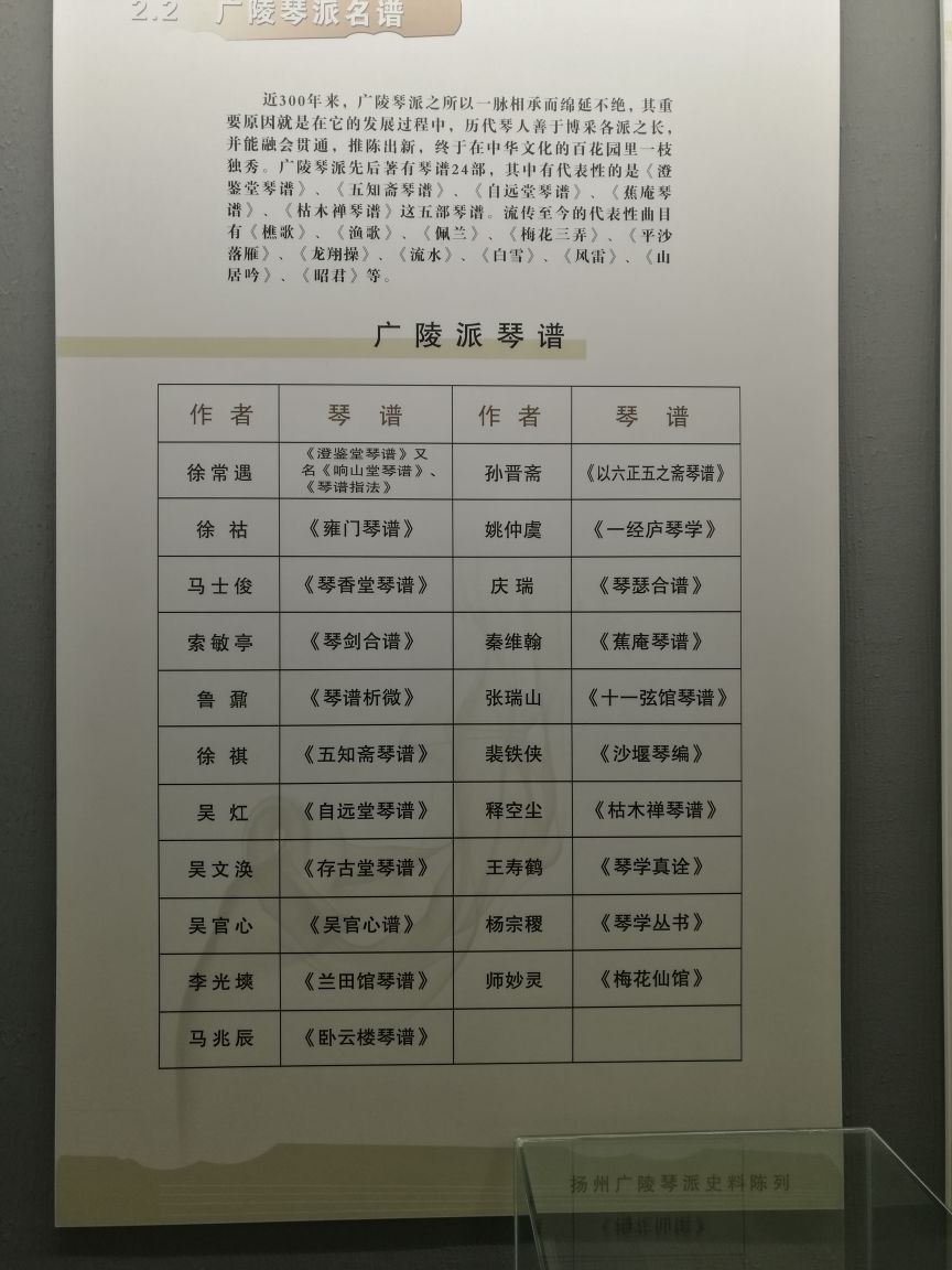 广陵琴派史料陈列馆位于史可法纪念馆内,是一幢两层楼的建筑,这里广陵琴派的形成历史,主要代表人物和成就广陵琴派史料陈列馆位于史可法纪念馆内,是一幢两层楼的建筑,这里广陵琴派的形成历史,主要代表人物和成就,是研究中国古琴历史的好地方。