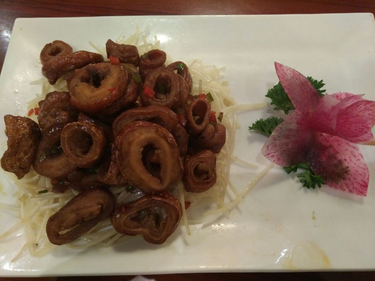 菜品的味道还是很不错的,牛油果虾球,虾虽然是炸过的,沾上牛油果沙司,很清爽,这个肥肠也不错,炸...菜品的味道还是很不错的,牛油果虾球,虾虽然是炸过的,沾上牛油果沙司,很清爽,这个肥肠也不错,炸过啦,没有很腻,好吃,就是牙口不好的可能有点费劲儿,但好吃哦。