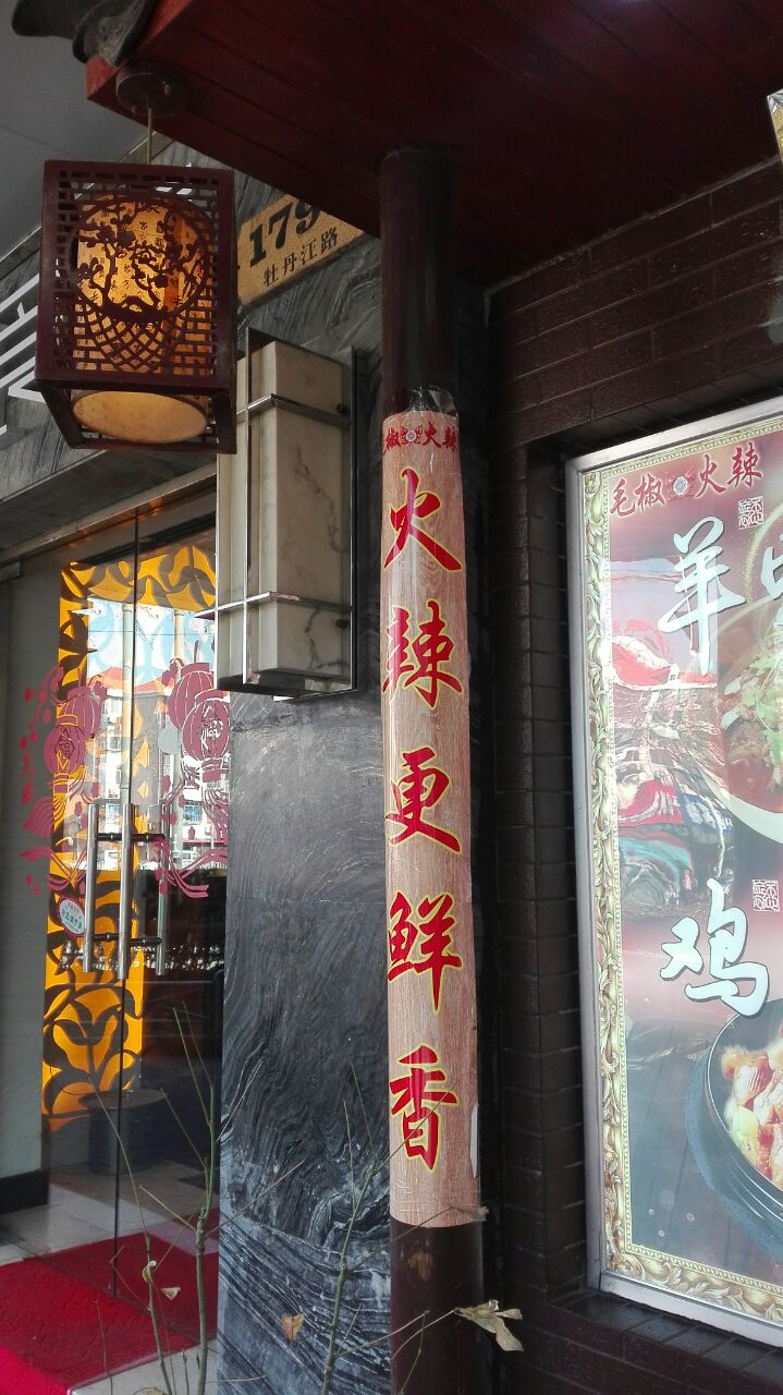 朋友推荐去的,在牡丹江路上盘古路路口,店名招牌不是很明显,店面不大但是胜在干净,店里装修倒是蛮有意思的。打包了心念念的羊蝎子小份,78份/元,加桶式打包盒一个2元,菜上面浮的辣油还是蛮厉害的,实际算是微辣吧?!八片左右比巴掌心大一点的羊蝎子,厚度大概在10-15mm,配菜是豆芽和萝卜,羊蝎子肉还算多,味道也不错,打包回去自己再补些配料!即可美美吃上一顿啦。
