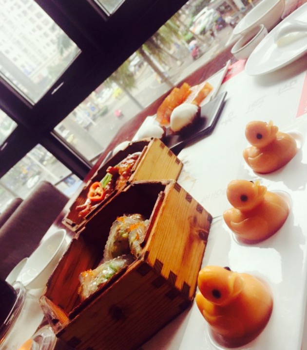 一早起来说喝早茶,不过没什么胃口,来到这古色古香的地方感觉不错,看了下周围的装潢和家具,标价几万几十万不等,可能来得早服务员还在打扫卫生,点了九个茶点一壶菊花买单不到200,中等消费吧。等了半个多小时才上齐,期间催了两次,有个服务生态度欠佳,其余都还好,茶点也感觉很不错,据说这里装修过亿。
