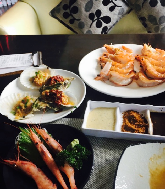 在隐泉的两次就餐体验都特别好,本人还蛮喜欢这种点单式的自助,拿着菜单看到上面标注的单点价都是几十上百,就感觉自己好土豪哈哈哈。其实这种单点,保证了每位顾客的用餐体验,也不用为了某样食物去争抢,并且也减少了浪费,只要适量点单,基本上所有的要求都会满足。服务生不错,很耐心地点单,很迅速地收使用过的盘子,桌面上总是干干净净的。水果切地很整齐,有红心火龙果,芒果,西瓜等,都是不错的水果。推荐。蒜香生蚝,扇贝,青口,这种东西去烧烤摊都是8元左右一个,在这边吃太划算了,很清新,并且味道十分好,这个时节的青口扇贝都特别肥美。芝士焗生蚝,焗扇贝,特殊的吃法,不过最好只吃两个,不然会腻。三文鱼,很清新,记得要上冰的做法。其余的有黑猪肉,薄烧牛舌,冷豆腐,蒜香白虾。隐泉的性价比太高了,今后也不会打算去吃别的自助了。