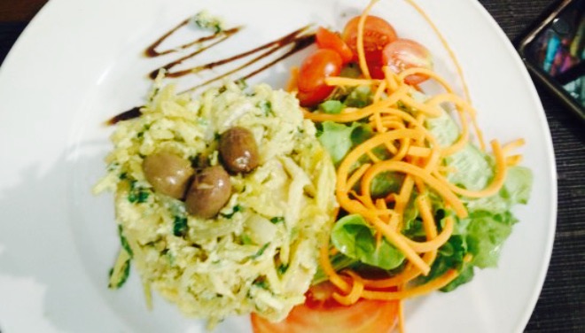 餐馆关门了,但工作人员主动提出帮我们在酒吧吃饭。我们在星期日晚上匆匆吃了顿饭