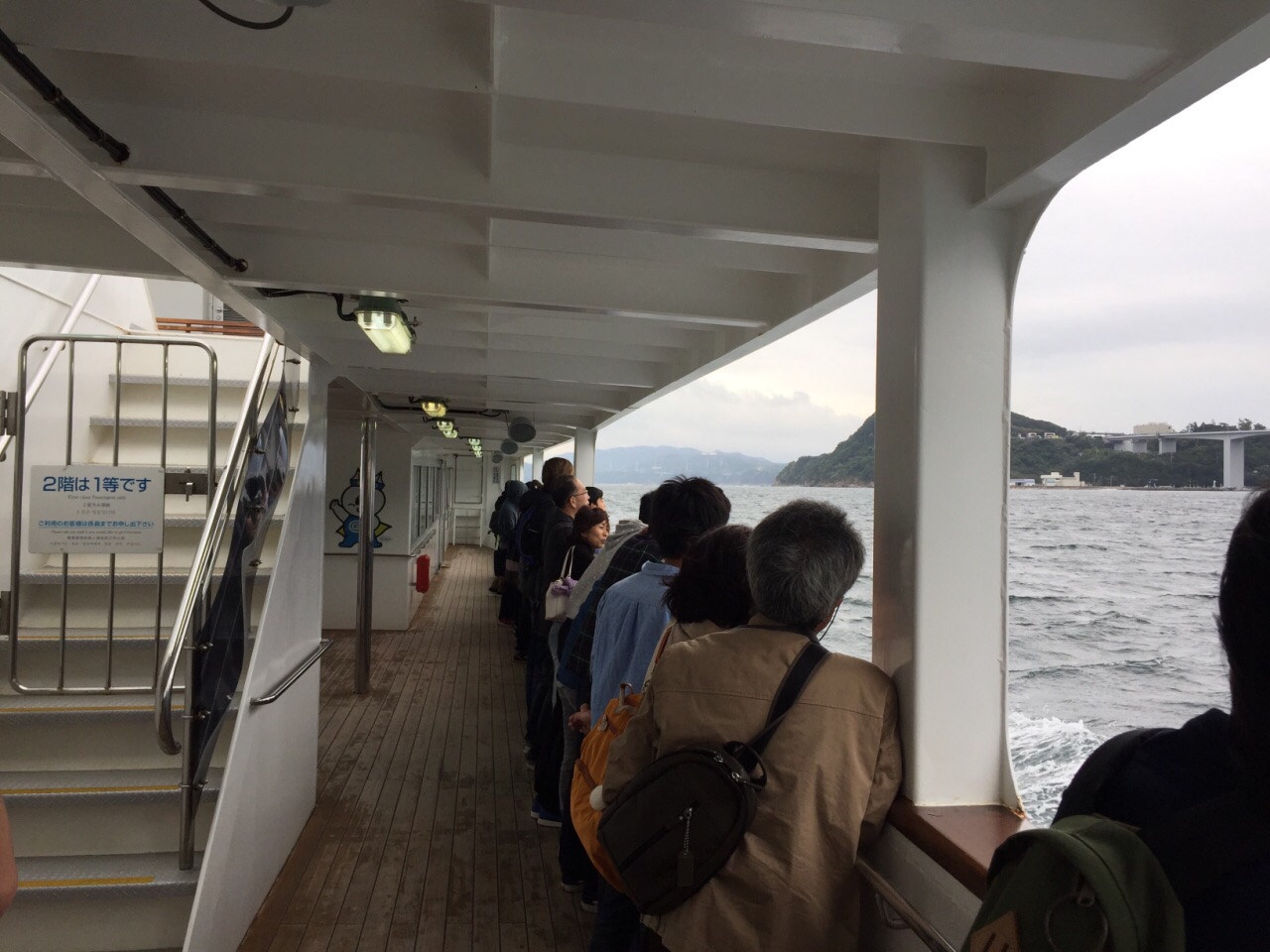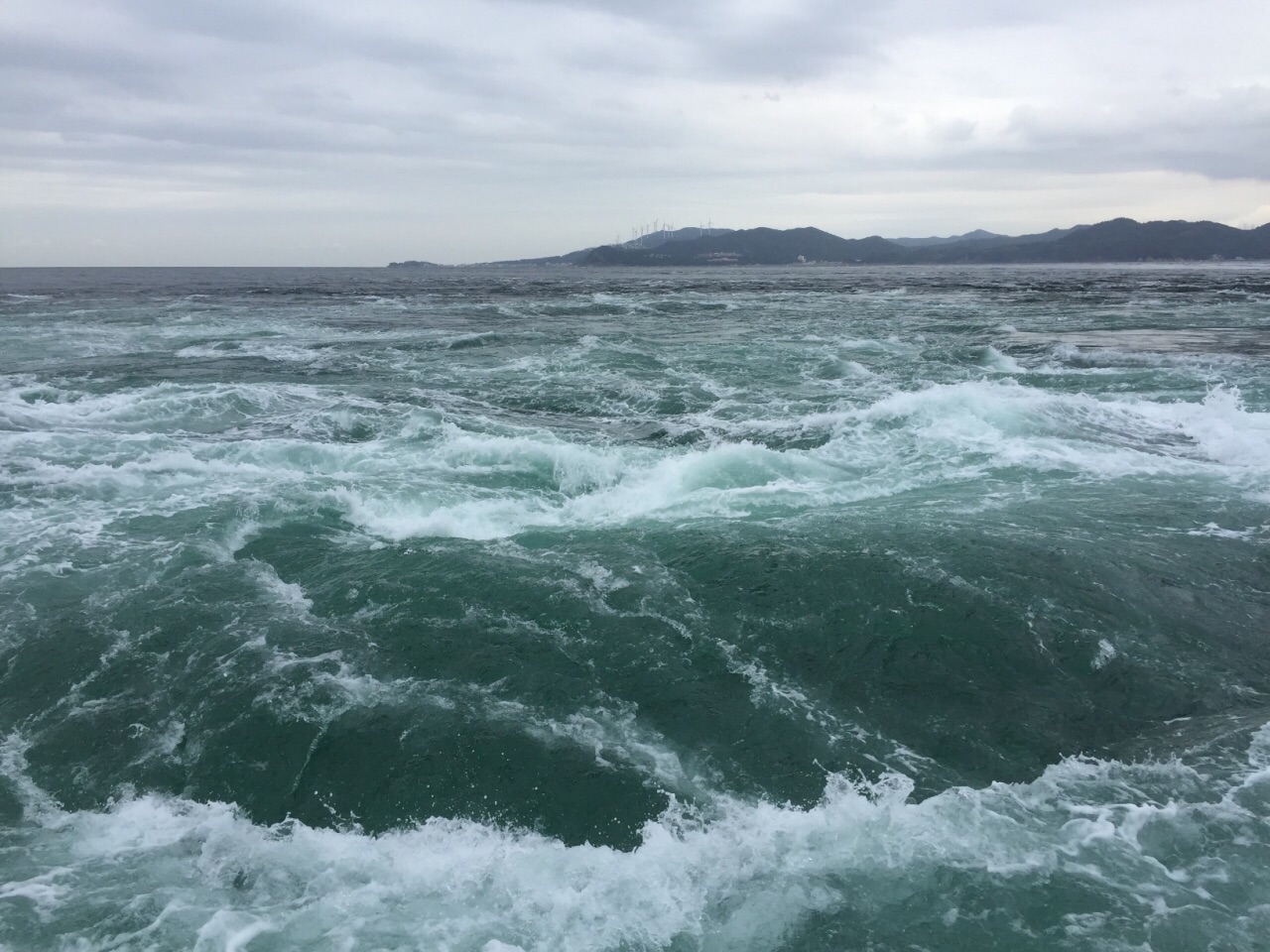 非常非常推荐的景点,如果来到鸣门,必不可少的活动就是去乘邮轮近距离观看漩涡。其实邮轮也分为两种,大船和小船,大的话更便宜,人多,但是不会晃,小船票价贵看的也好一些,但是会容易受浪影响,这次乘了大船,看到很多小船反而更靠近漩涡,感觉小船会更好一点。 一个来回大概要50分钟左右,总之开船一路上照片都没停过,这才是真的赞的景色,切记来的时候一定要查好表,赶在满潮的时间来的话基本上一个漩涡连一个漩涡,一直不停,绝对看到过瘾。 另外如果上鸣门大桥也可以直接从顶部看漩涡,不过非自驾或跟团的话会比较悲剧,路有点远,可能错过满潮时间。