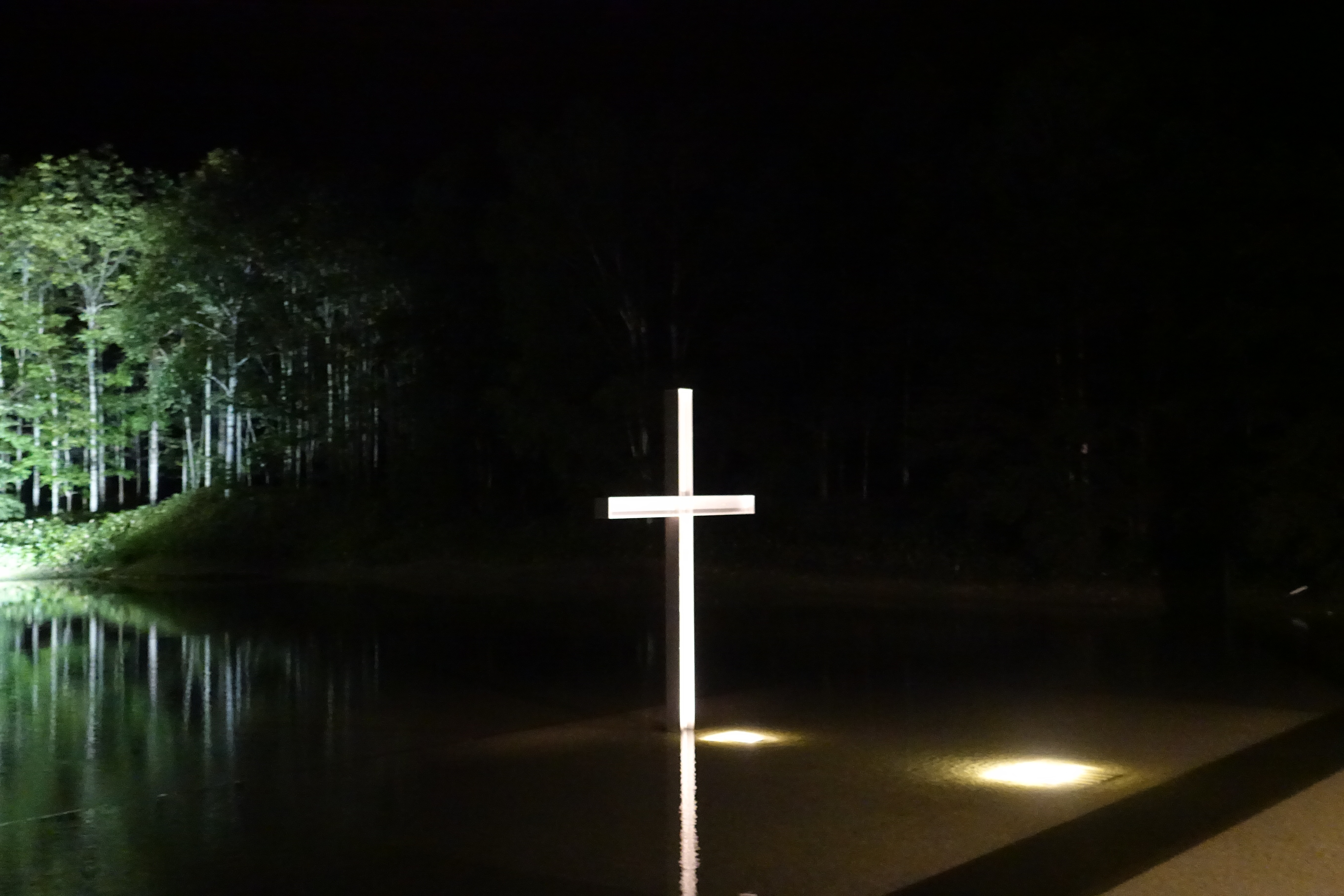 从照片中的建筑物等候,大约是晚上七八点钟的时间(具体看酒店的安排)排好队,由专人带着前往参观,钢铁混凝土的风格,配着音乐,玻璃门打开的时候还是很感动的,人少点的话,静静的坐坐很舒服。顺带一说,等排队的地方旁边是酒店里的一家自助餐,挺好吃的。