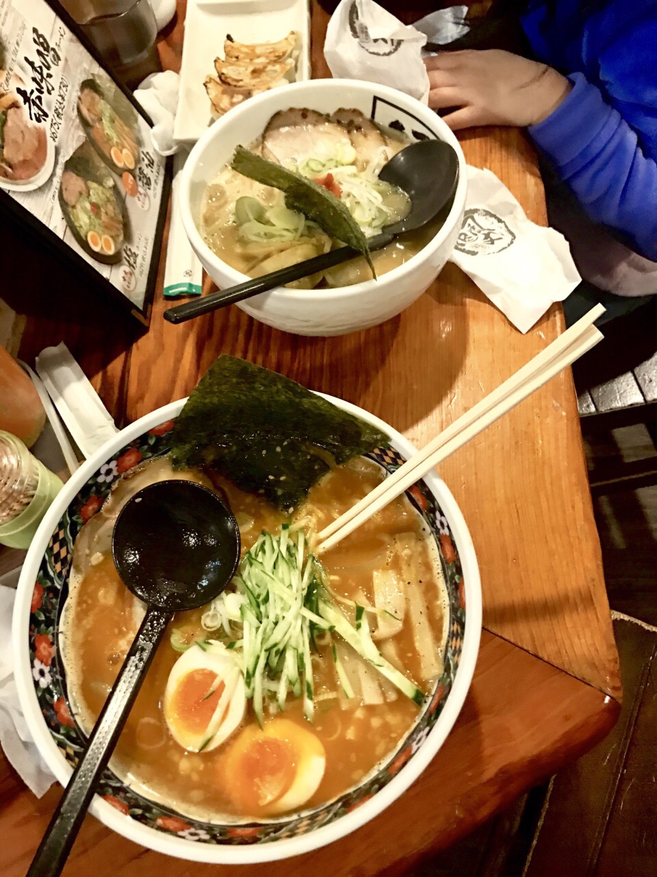 周二中午大风呼呼地,本以为非旺季应该随到随吃滴,但还是要等位15分钟没关系,我们在魔都历练过的吃货是很有耐心哒! 边等位边观察,有很多当地人也在吃他家的面,而且像是常客。 入座后点了他家的招牌面-白味噌、赤味噌和酱油拉面、辣味拉面+饺子! 餐桌是围着敞开式的厨房,所以厨师的制作过程都能看的清清楚楚,每份浇头都是现烧的! 面条顺滑有嚼劲,汤底口感层次丰富,有点偏咸,而且放了很多京葱丝,这点我不喜欢! ❌店门口的地面超级滑,去尝味的小伙伴们一定要注意哦!