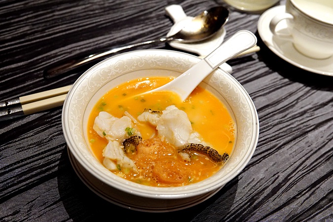 乐忻集团的高端餐饮品牌“味之楼”最近在恒隆广场开张营业了,据说以传统经典粤菜手法为基础,采用新鲜食材为原料精心烹制的山珍海味实在是很有必要来探寻一番的。 恒隆广场5楼的位置很好找的,一进入餐厅就是高挑的大堂位置,仔细观察一下不难发现运用了中国传统的五行元素,让餐厅视觉上不仅金碧辉煌而且也是被东方优雅氛围所包围,中式餐厅的底蕴同时也在各种装饰细节上体现出来。包房的位置更具隐秘也更宽敞,让我们品尝精致粤之味的同时心情更加愉悦,还有专业的侍酒师服务也更贴心地享用美食盛宴。 香脆金砖豆腐,外脆里嫩的口感已经做到极致,看似外观简单的造型口感和滋味确是绝对能体现出厨师的功力的,非常嗲的一道菜! 经典XO酱炒萝卜糕,萝卜糕能做到与众不同的口感也是很有心思的一道菜了,不仅能吃到XO酱的鲜香,而且萝卜糕的口感还有点微脆,还带着一点点的微辣,实在是让人难忘的好滋味! 鲍汁凤爪,凤爪的软糯口感已经无可挑剔,采用的是鹰嘴豆代替花生,让口感和滋味让人着实小小的惊喜了一把。 玻璃乳鸽,称之为上海最好吃的乳鸽一点也不为过,传统技艺的手法来腌制乳鸽入味,烹制的手法更是精心考究,乳鸽不仅外脆里嫩的口感很好的展现出来,而且乳鸽的皮脆口感是非常不一般的,用“玻璃”一词来形容再适合不过了! 胶原蛋白花胶汤,美食享用的同时不忘滋补养颜,这个用石锅保暖端上来每人一份的花胶汤一定不能错过,丰润而又鲜美的口感与花胶、竹笋、菌菇丝等食用美味无比也超满足! 松露蛋白滑带子,蛋白滑嫩带子鲜美,松露带出不同的香味,西式的单人装盘份吃起来也很精致美味!黑白胡椒粉丝虾煲,黑白胡椒的烹饪让菜的滋味感觉特别鲜香美味,虾和粉丝都很入味好吃! 龙虾汤过桥石斑鱼,这个大菜上菜过程还是蛮有仪式感的,刺身鱼片的石斑鱼在龙虾汤中快熟烫熟,搭配豆芽、香芹末、油条脆及香葱,汤水和鱼片是新鲜中透出来的无比好滋味! 脆皮叉烧包,非常脆的外皮里面是鲜甜的叉烧,感觉一个下去都被甜蜜融化了很幸福的感觉。 七彩缤纷,作为甜品组合品种还是蛮多的了,冰镇的感觉也蛮震撼的,鲜果、牛油果、杨枝甘露、芦荟酸柑香茅冻都是让人喜欢的,清新凉爽的口感和不错呢!