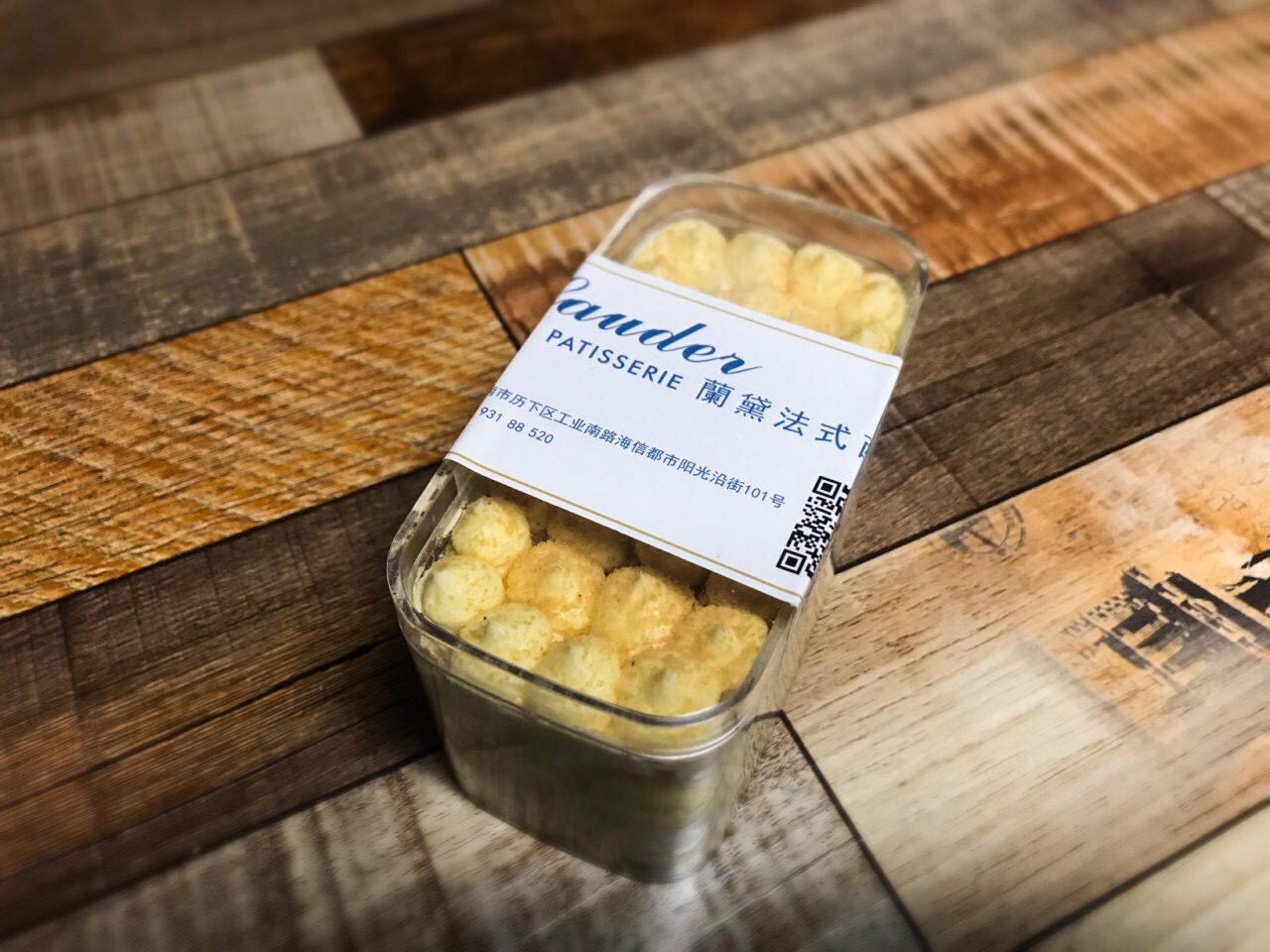 小区门口的甜品店,店主也在我们小区住,主营各式甜品、蛋糕与甜面包。之前买过面包吃,不是太喜欢。隔了好长时间又去买了甜品吃,一个豆乳盒子让我印象有了改观。目前的印象是他家甜品比面包水平高。 #豆乳盒子# 豆浆、奶油、黄豆粉做成的甜品,用料扎实,豆香明显,从卖相到味道都还不错。 【环境】 一楼是柜台和生产区,二楼有两张小桌可以坐下来慢慢吃。椅子上有只可爱的玩具熊。店内绿植众多,尤其是二楼就餐区,就是一副绿色植物的世界。在此吃着甜品聊聊天也不错。 四星支持一下邻居的生意