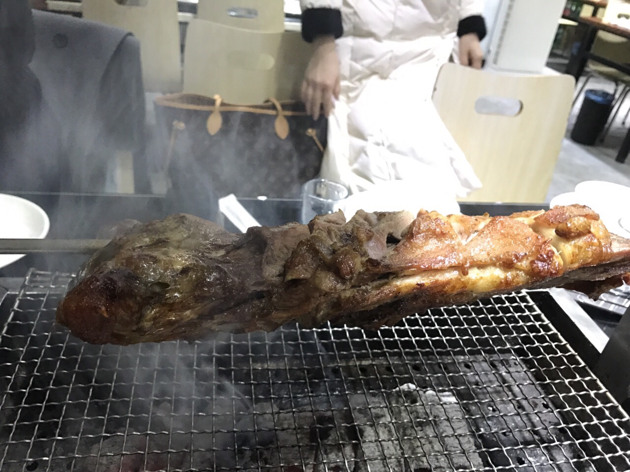 餐厅位于箕槽街,夹在两家日料店里面显得有些显眼。记得16年就和朋友去吃过这个餐厅,惊喜的是居然还在。和几个朋友相约在这吃烤羊排,冬天似乎很适合吃羊肉。用了团购券,价格划算了许多。一份羊排和羊腿,还有羊汤等。 这里的羊肉烤的外焦里嫩,沾上店里的孜然,显得特别的香。 羊排相对比较肥一些,个人比较喜欢略带肥肉的羊肉,味道香,服务员会帮你切好拿过来,再放在店里提供的碳炉上的铁丝网上稍微烤下,香味十足。 这边的服务也还不错,提供特制的刀和叉,方便切羊腿,羊腿还可以让服务员帮忙切好。 这里的其他烧烤味道倒不是很好吃,但是羊肉个人感觉性价比很高。冬天吃羊肉不错哦